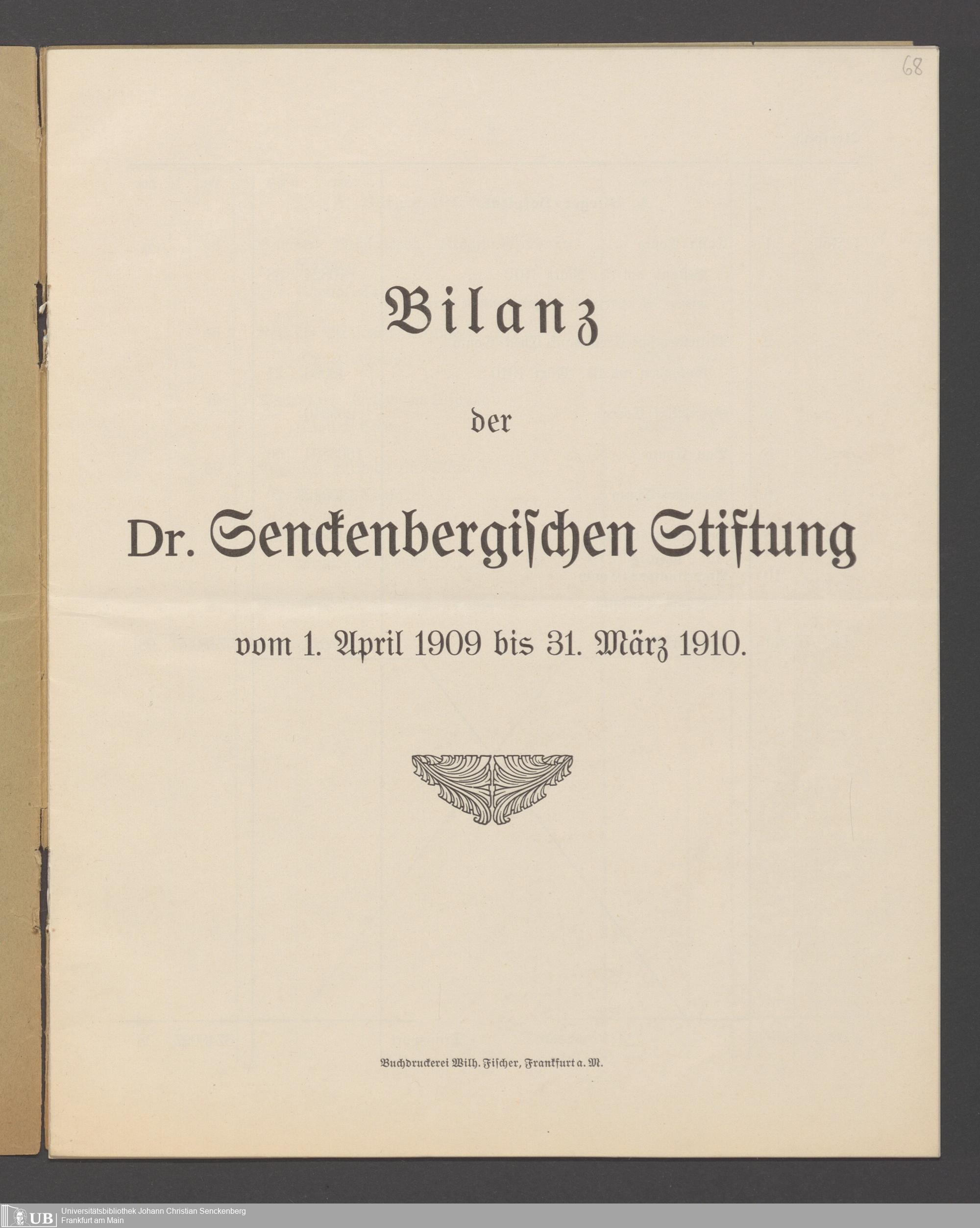 B 5 Dr. Senckenbergische Stiftung, 266 - Bilanzen der Senckenbergischen Stiftung