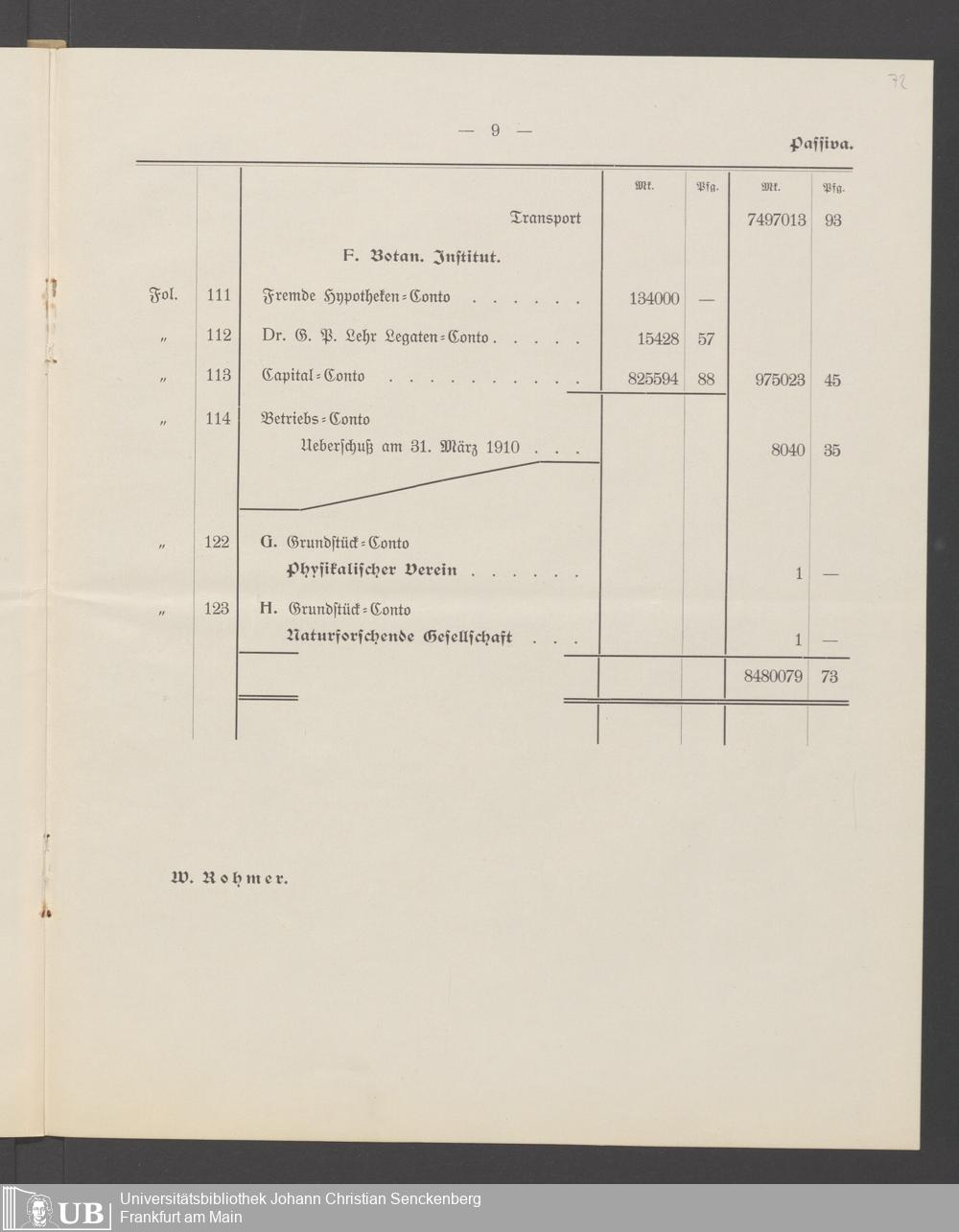 B 5 Dr. Senckenbergische Stiftung, 266 - Bilanzen der Senckenbergischen Stiftung