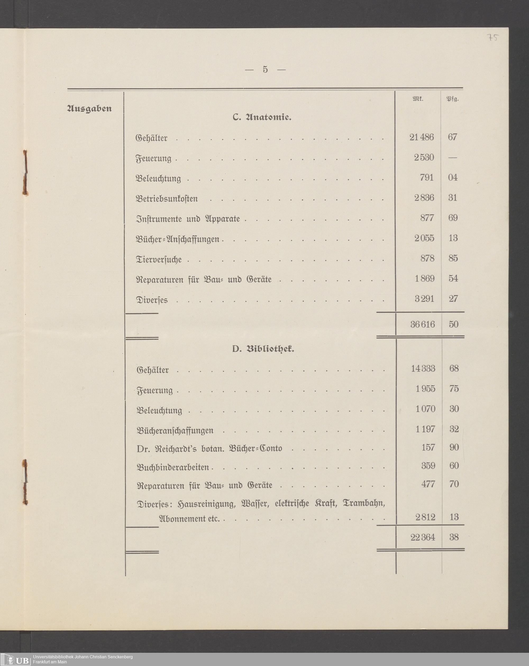 B 5 Dr. Senckenbergische Stiftung, 266 - Bilanzen der Senckenbergischen Stiftung