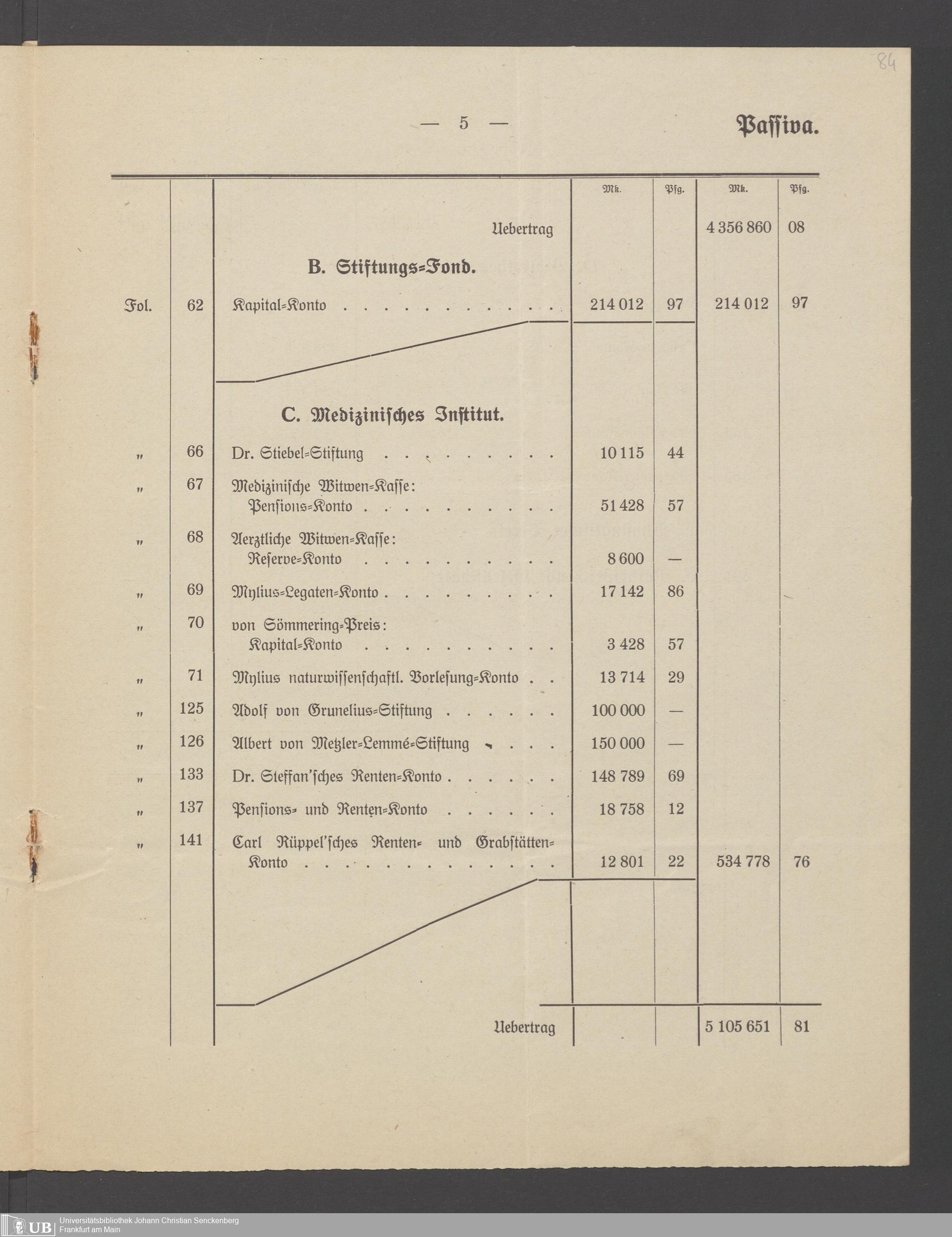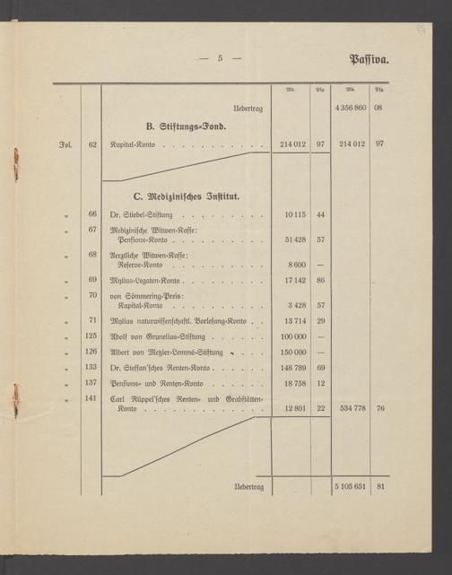 B 5 Dr. Senckenbergische Stiftung, 266 - Bilanzen der Senckenbergischen Stiftung