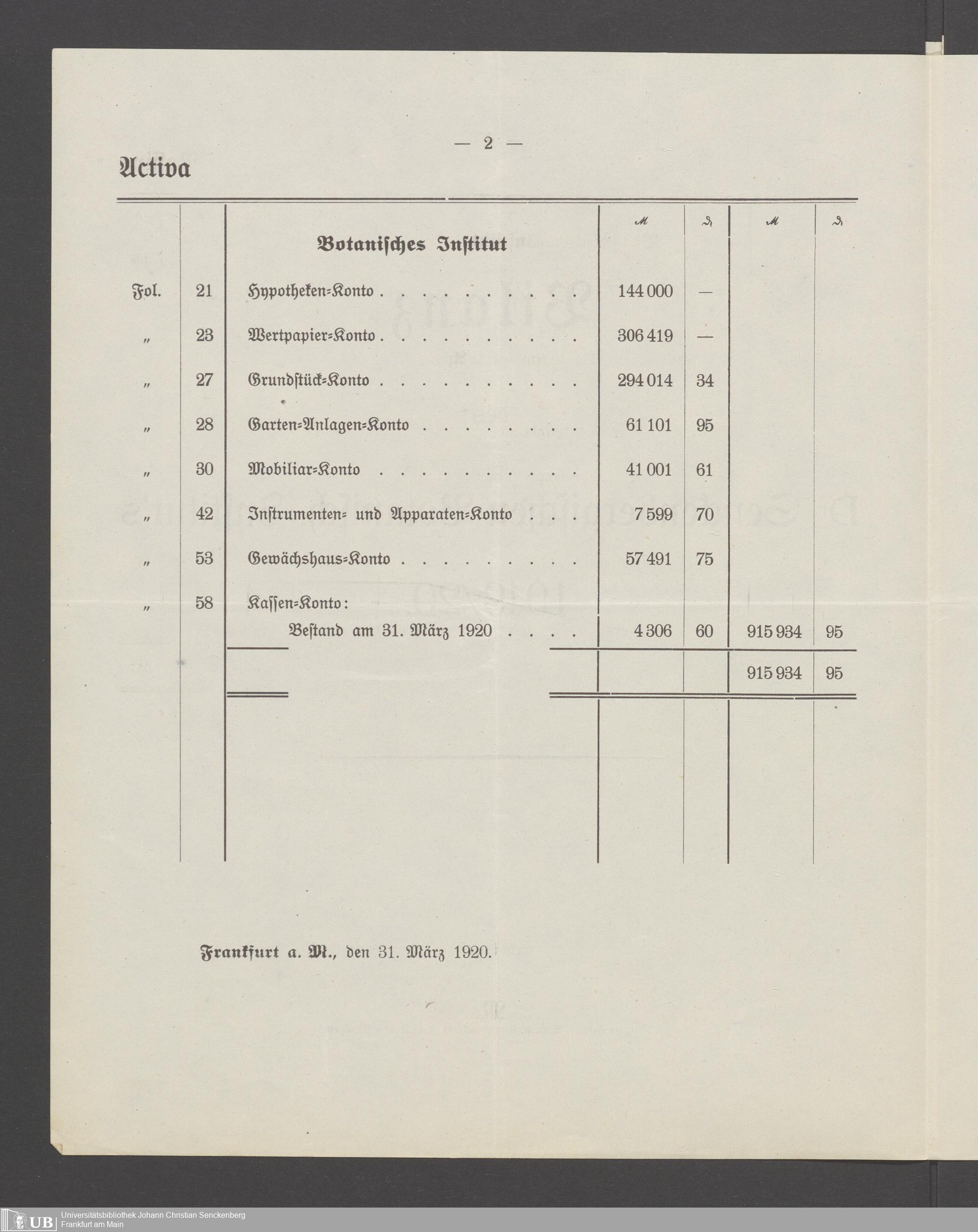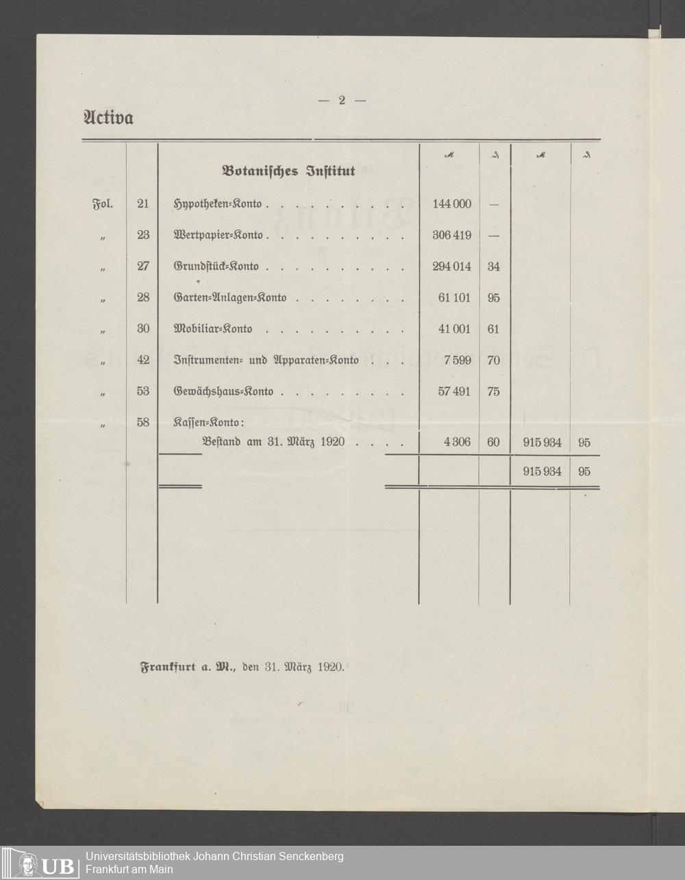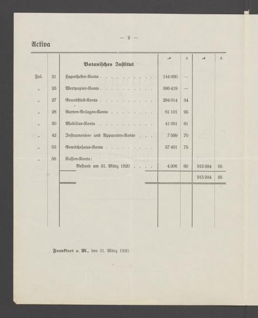 B 5 Dr. Senckenbergische Stiftung, 266 - Bilanzen der Senckenbergischen Stiftung