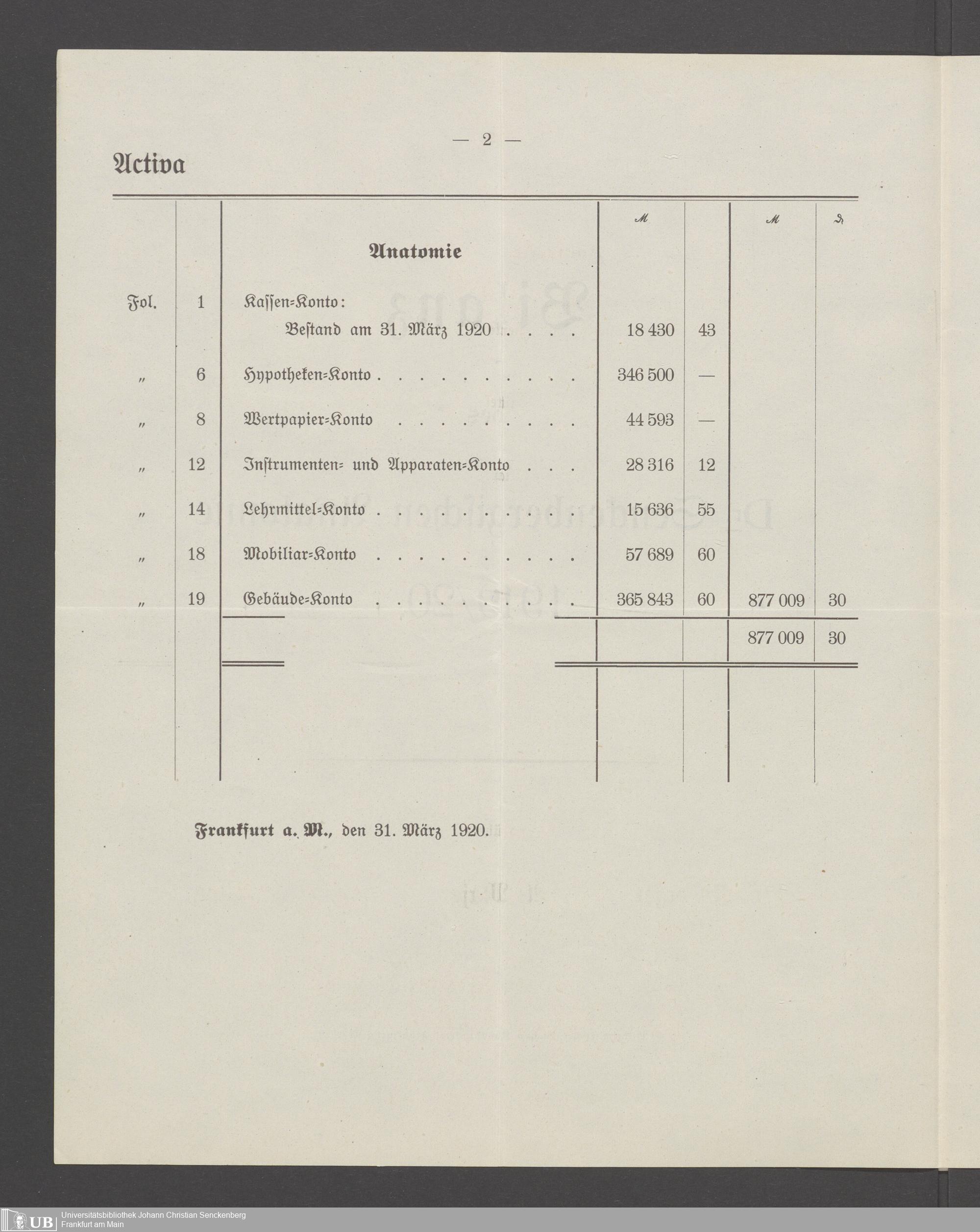 B 5 Dr. Senckenbergische Stiftung, 266 - Bilanzen der Senckenbergischen Stiftung
