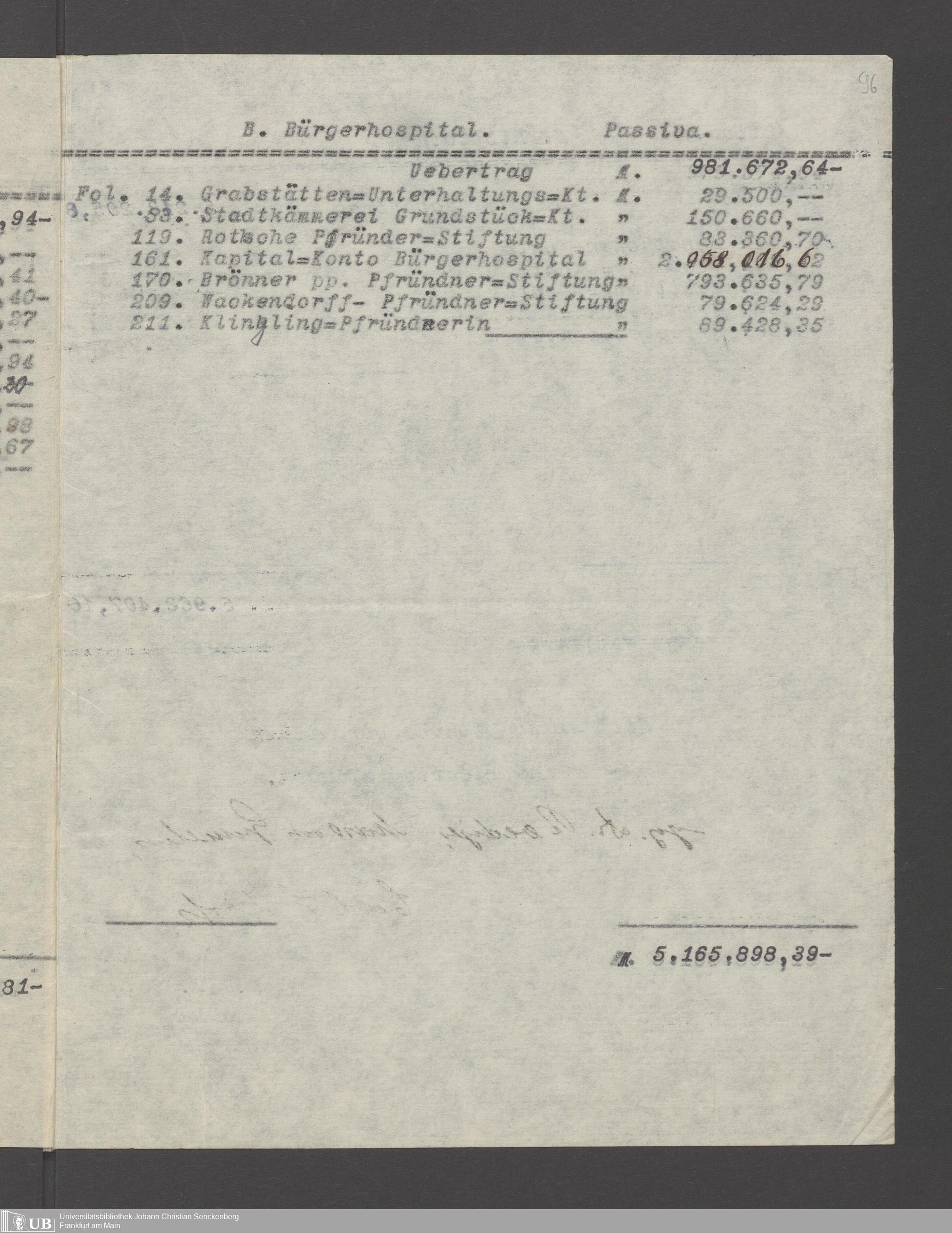 B 5 Dr. Senckenbergische Stiftung, 266 - Bilanzen der Senckenbergischen Stiftung