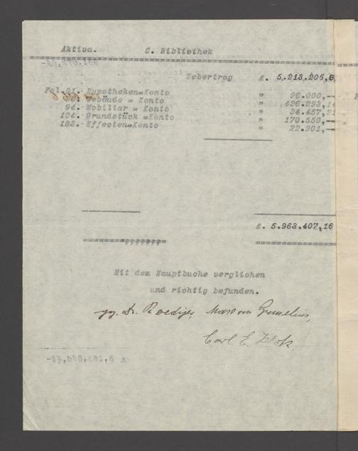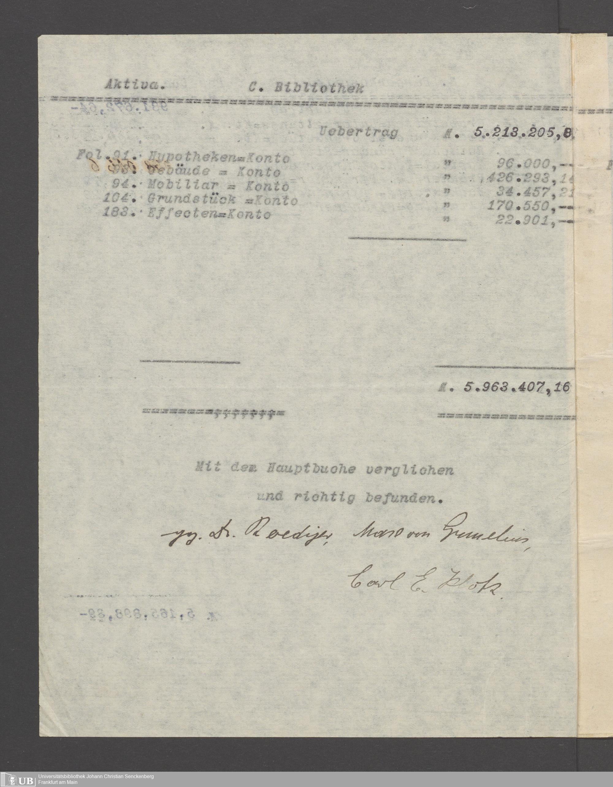 B 5 Dr. Senckenbergische Stiftung, 266 - Bilanzen der Senckenbergischen Stiftung