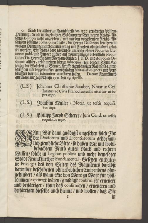B 5 Dr. Senckenbergische Stiftung, 267 - Abdruck der Privilegien für Juristen und Mediziner in Frankfurt