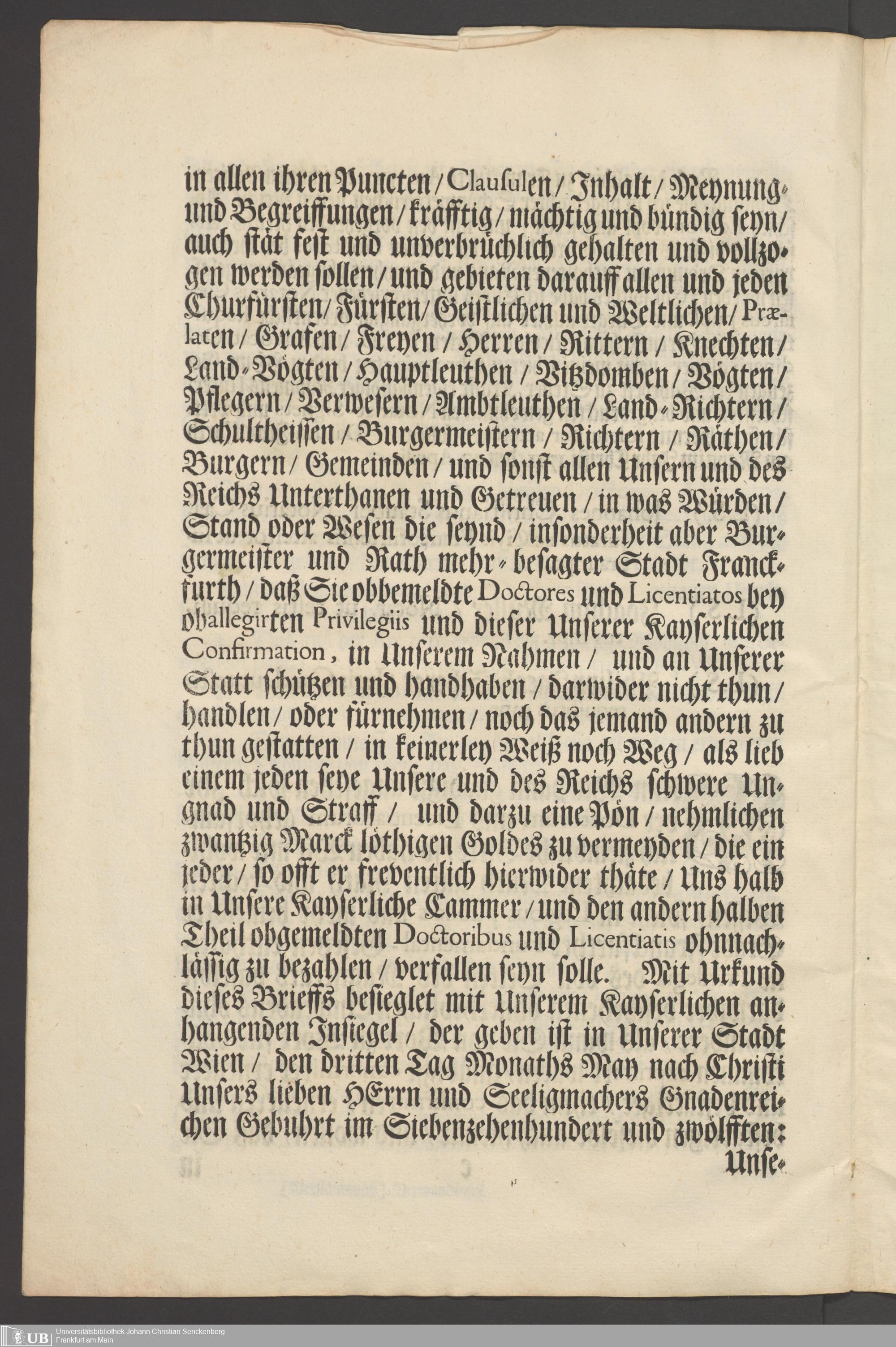 B 5 Dr. Senckenbergische Stiftung, 267 - Abdruck der Privilegien für Juristen und Mediziner in Frankfurt