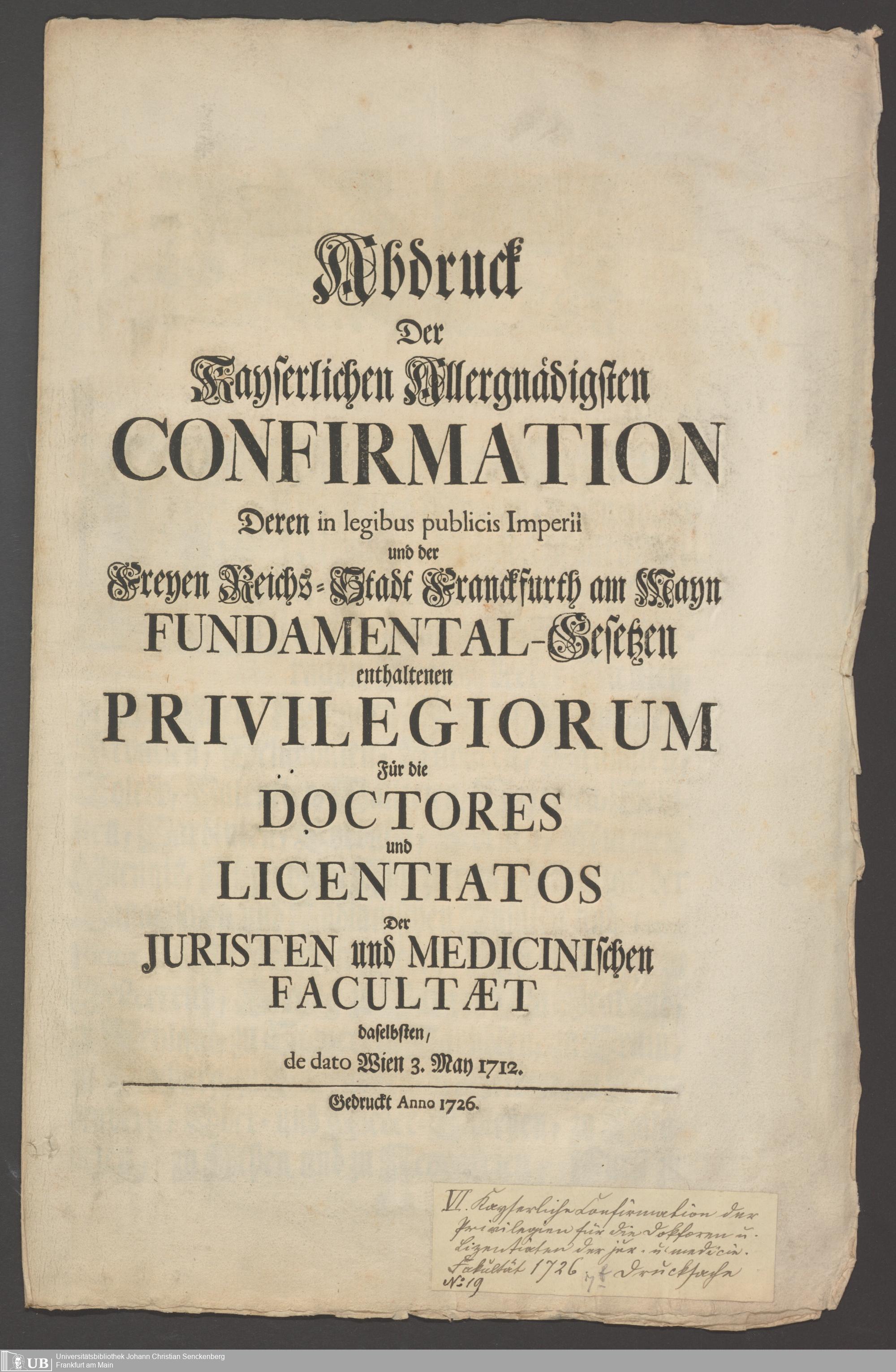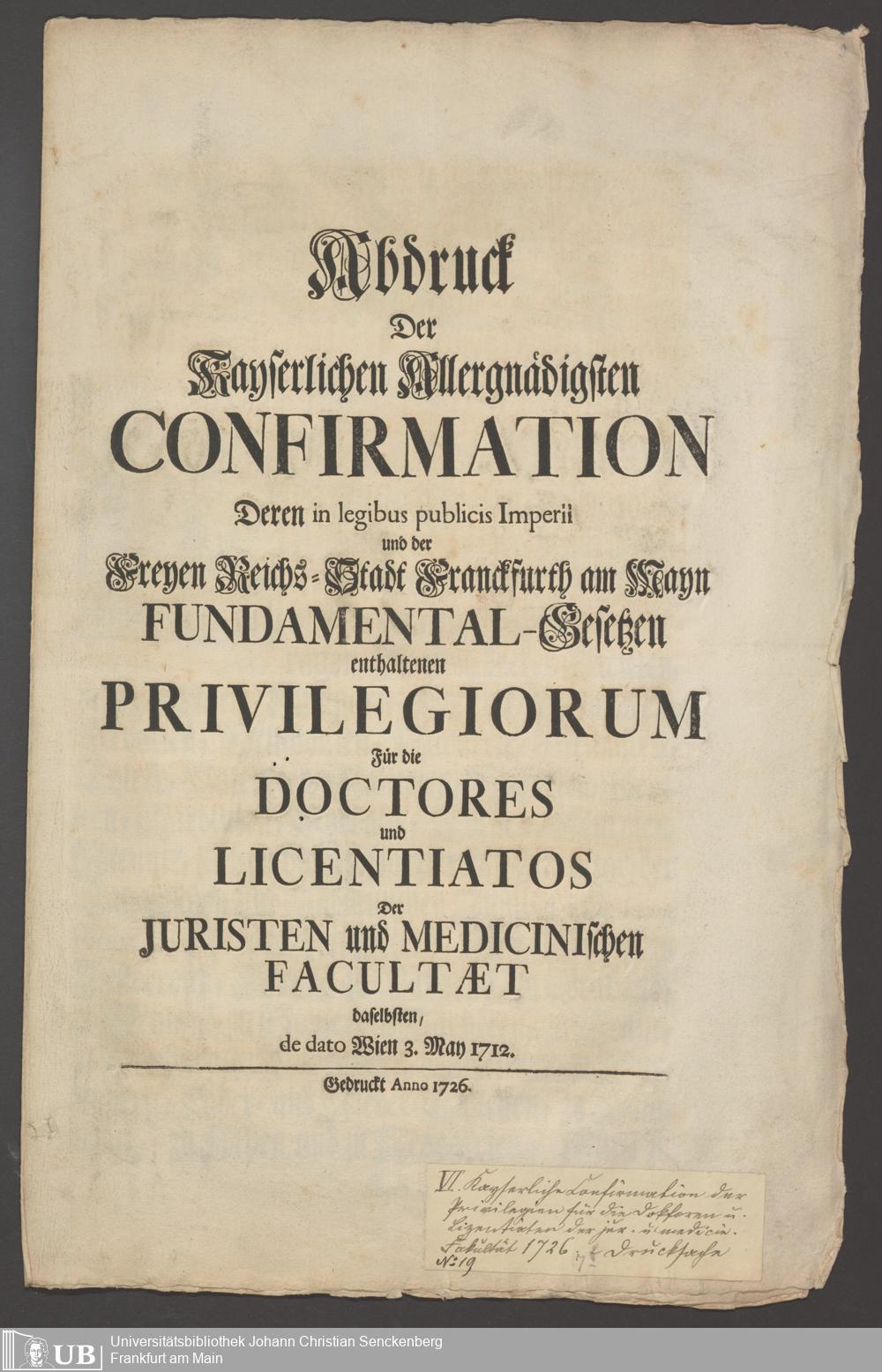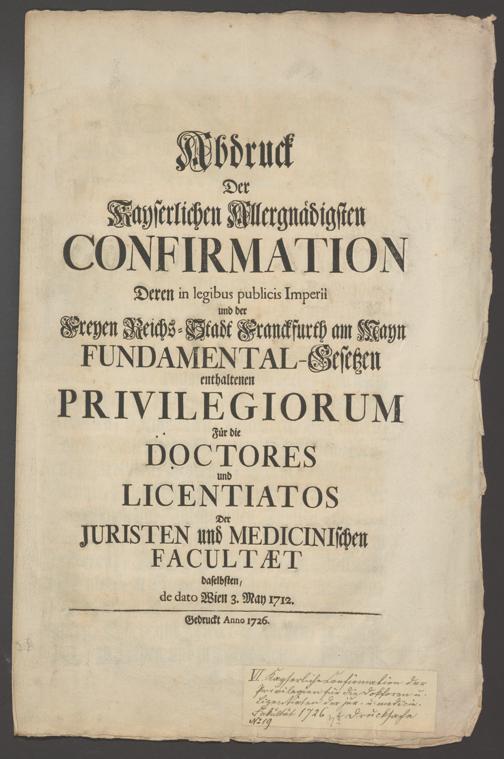 B 5 Dr. Senckenbergische Stiftung, 267 - Abdruck der Privilegien für Juristen und Mediziner in Frankfurt