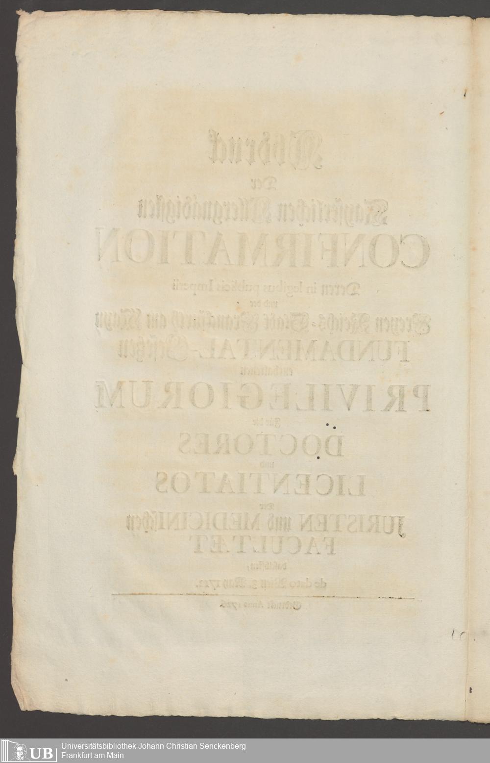 B 5 Dr. Senckenbergische Stiftung, 267 - Abdruck der Privilegien für Juristen und Mediziner in Frankfurt