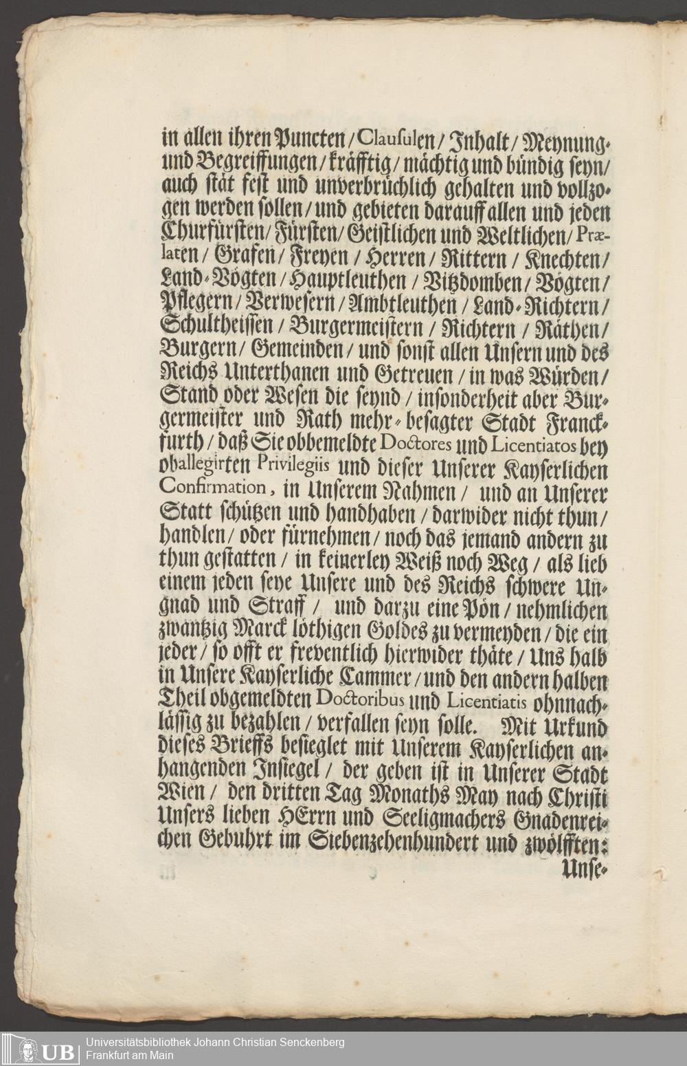 B 5 Dr. Senckenbergische Stiftung, 267 - Abdruck der Privilegien für Juristen und Mediziner in Frankfurt