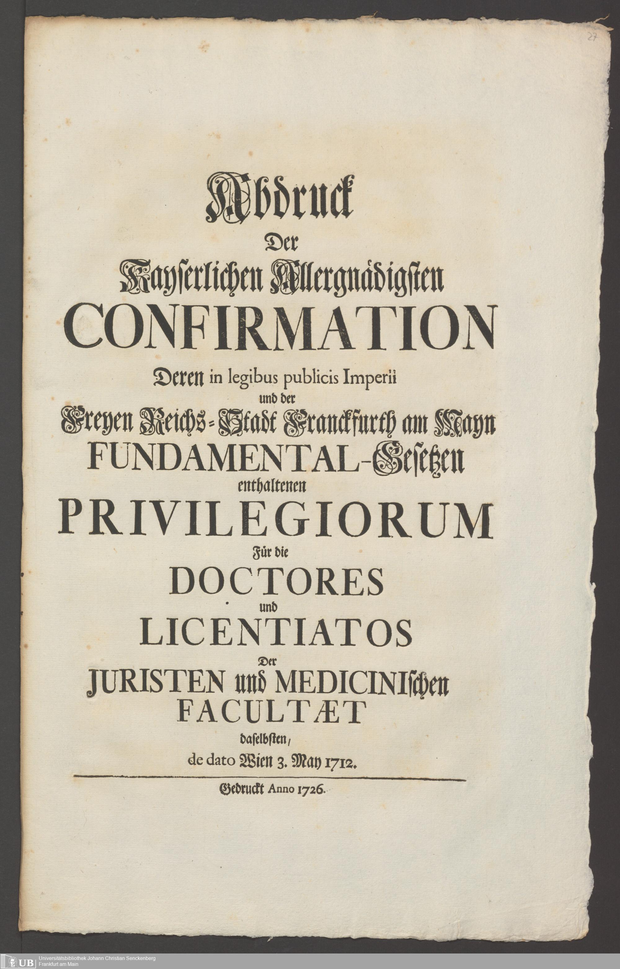 B 5 Dr. Senckenbergische Stiftung, 267 - Abdruck der Privilegien für Juristen und Mediziner in Frankfurt