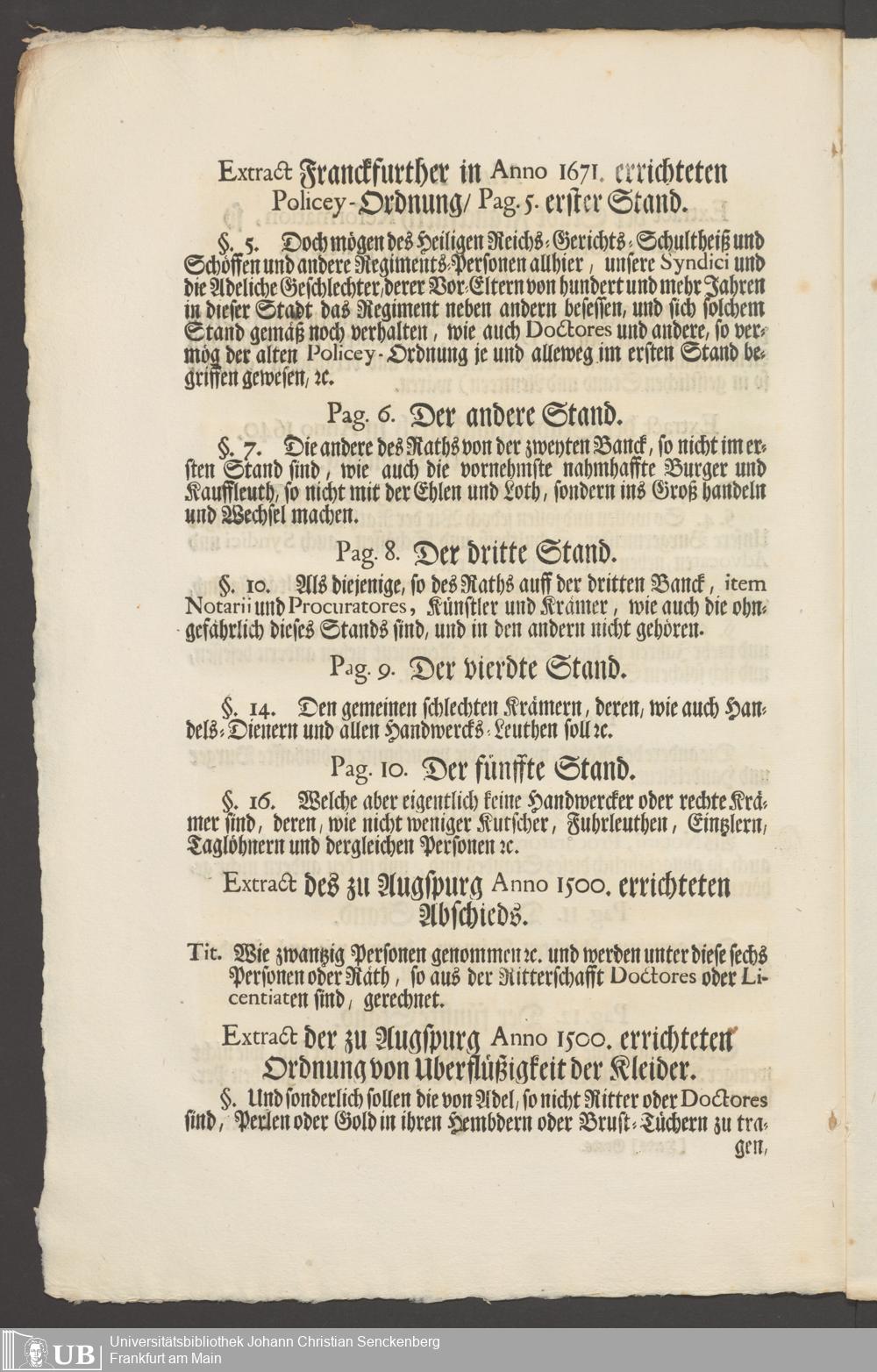 B 5 Dr. Senckenbergische Stiftung, 267 - Abdruck der Privilegien für Juristen und Mediziner in Frankfurt