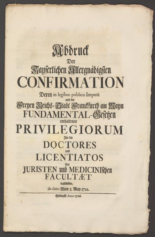 B 5 Dr. Senckenbergische Stiftung, 267 - Abdruck der Privilegien für Juristen und Mediziner in Frankfurt