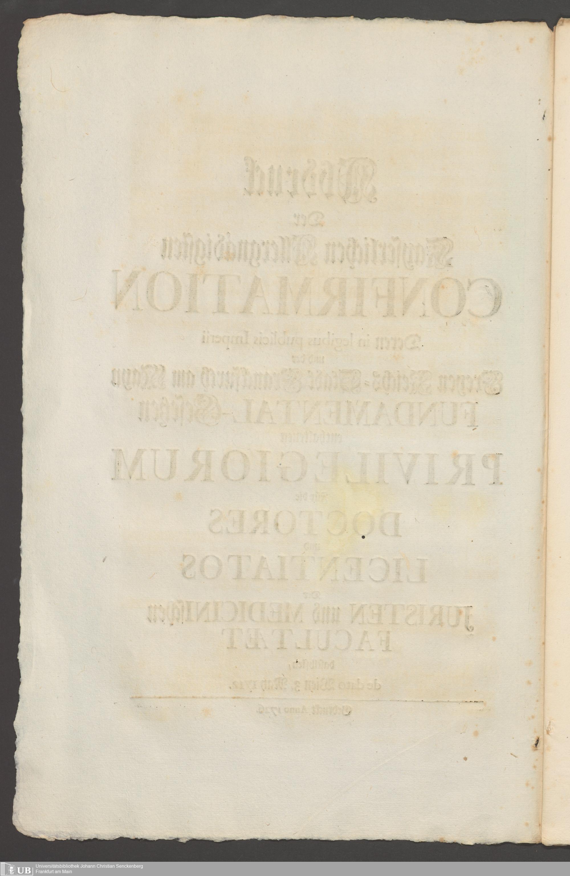 B 5 Dr. Senckenbergische Stiftung, 267 - Abdruck der Privilegien für Juristen und Mediziner in Frankfurt