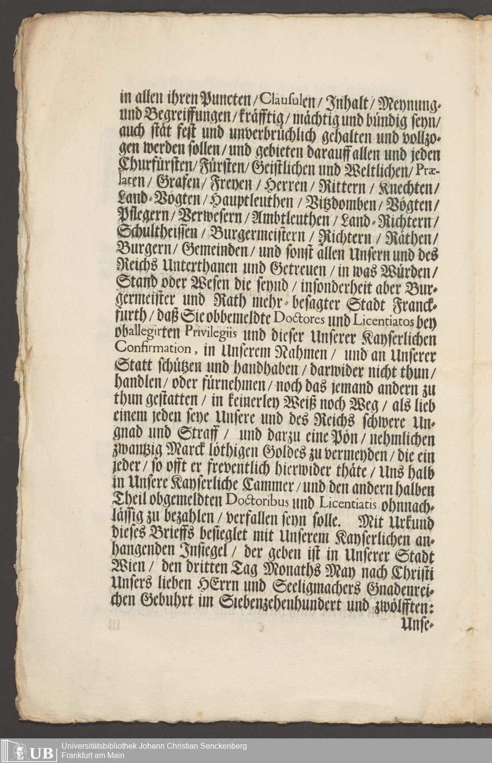 B 5 Dr. Senckenbergische Stiftung, 267 - Abdruck der Privilegien für Juristen und Mediziner in Frankfurt