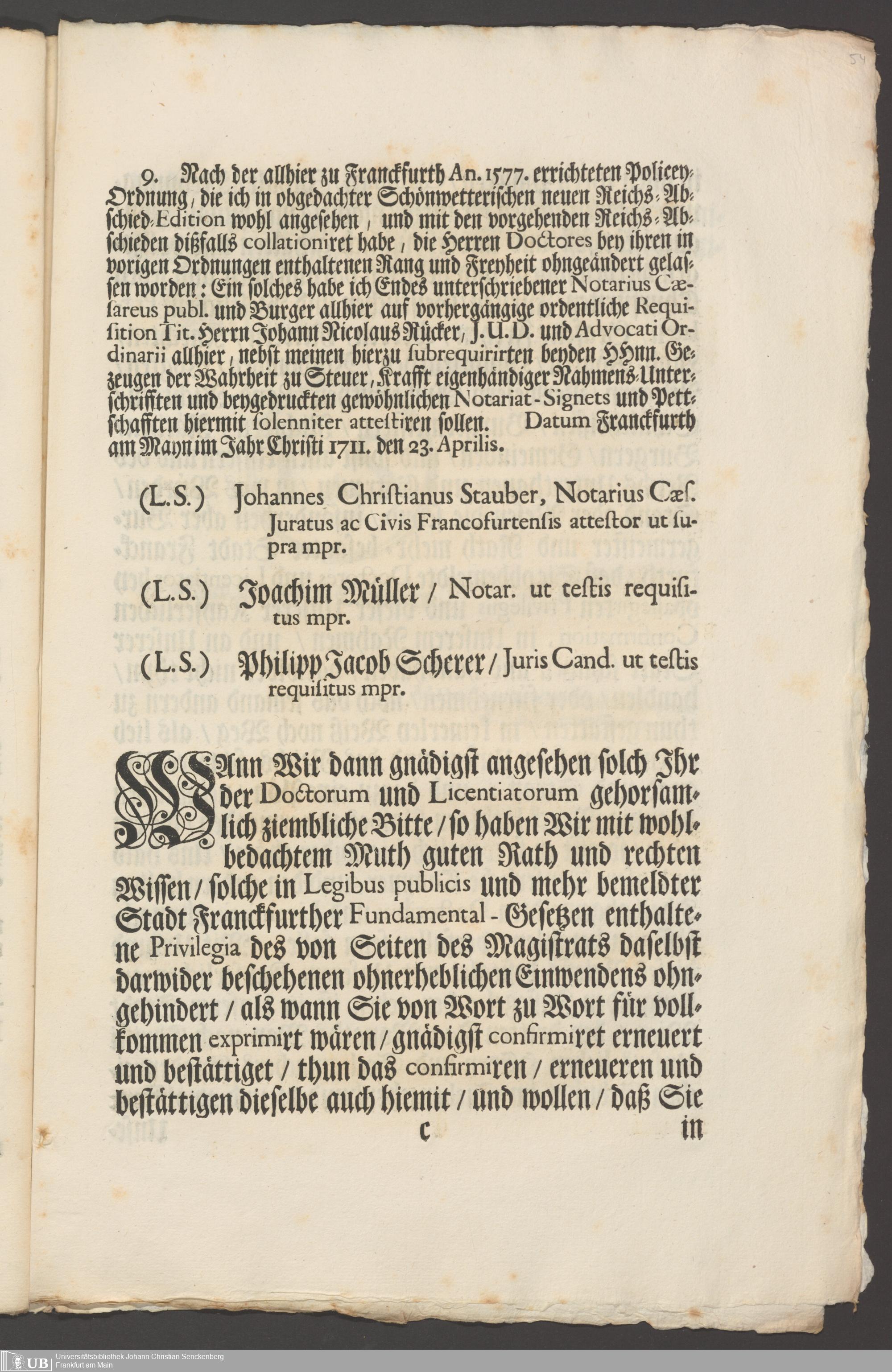 B 5 Dr. Senckenbergische Stiftung, 267 - Abdruck der Privilegien für Juristen und Mediziner in Frankfurt
