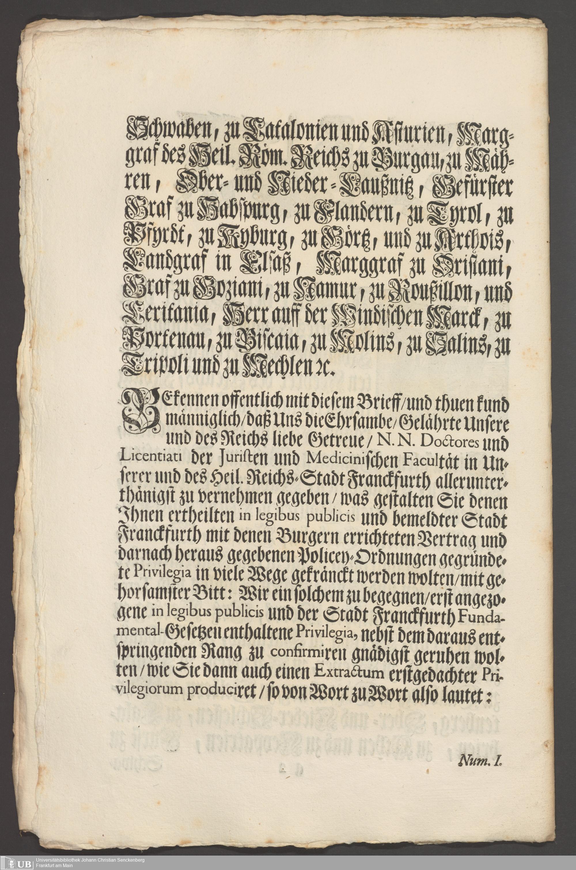 B 5 Dr. Senckenbergische Stiftung, 267 - Abdruck der Privilegien für Juristen und Mediziner in Frankfurt
