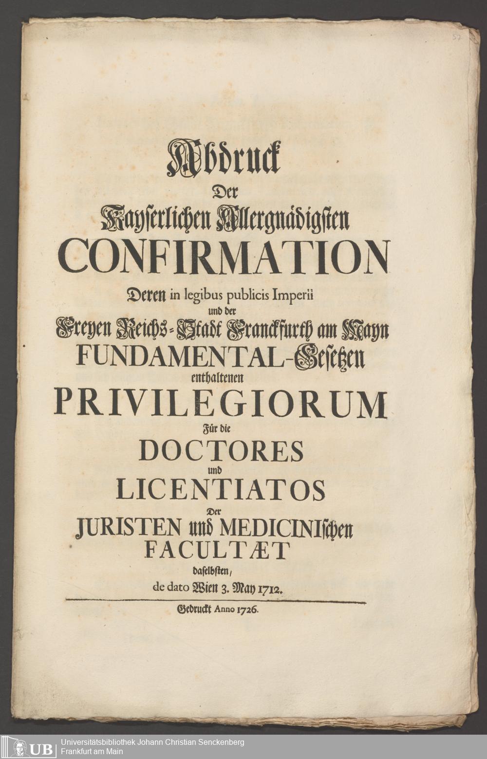 B 5 Dr. Senckenbergische Stiftung, 267 - Abdruck der Privilegien für Juristen und Mediziner in Frankfurt