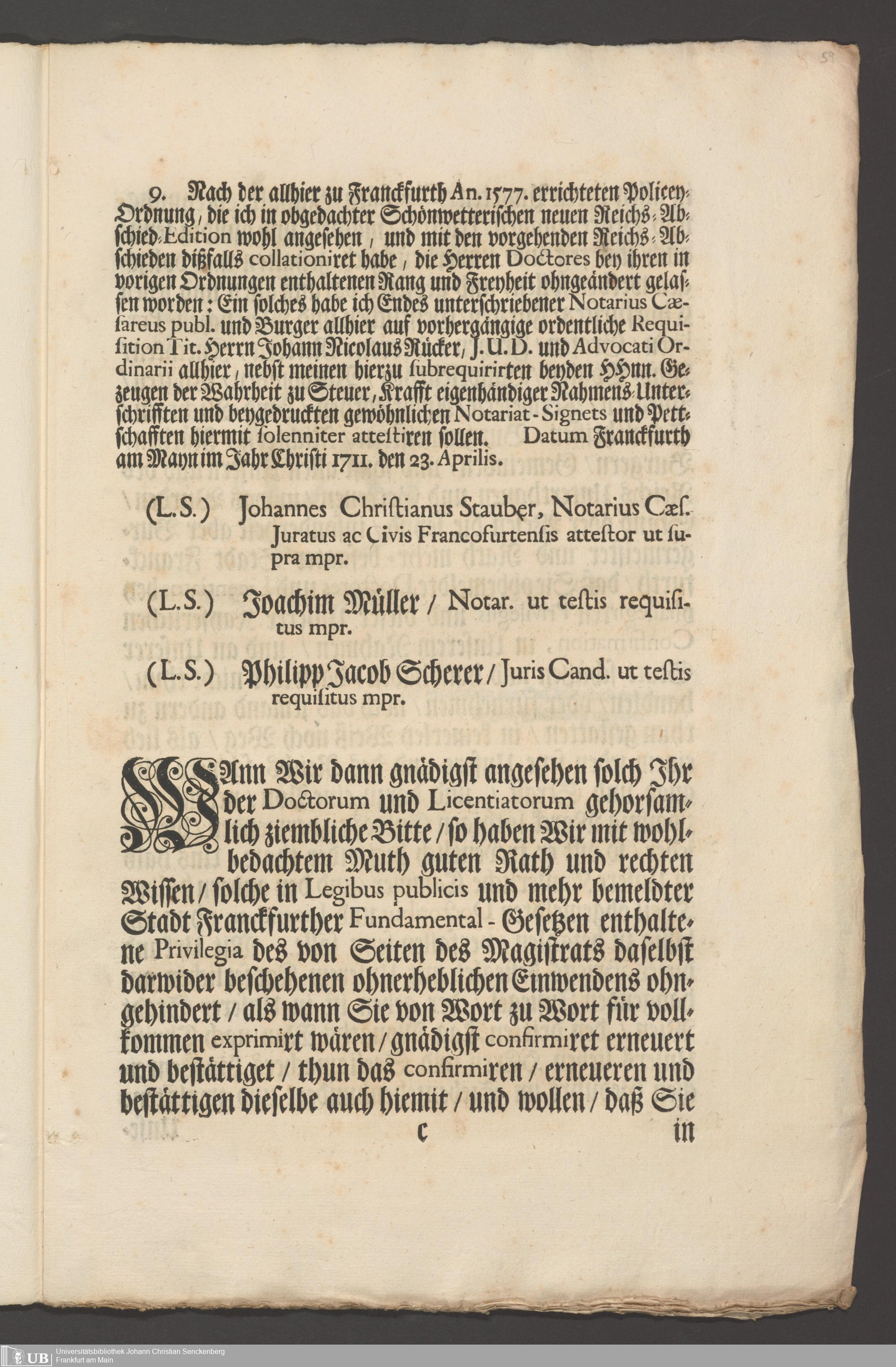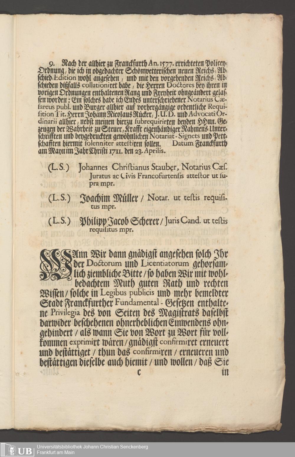 B 5 Dr. Senckenbergische Stiftung, 267 - Abdruck der Privilegien für Juristen und Mediziner in Frankfurt