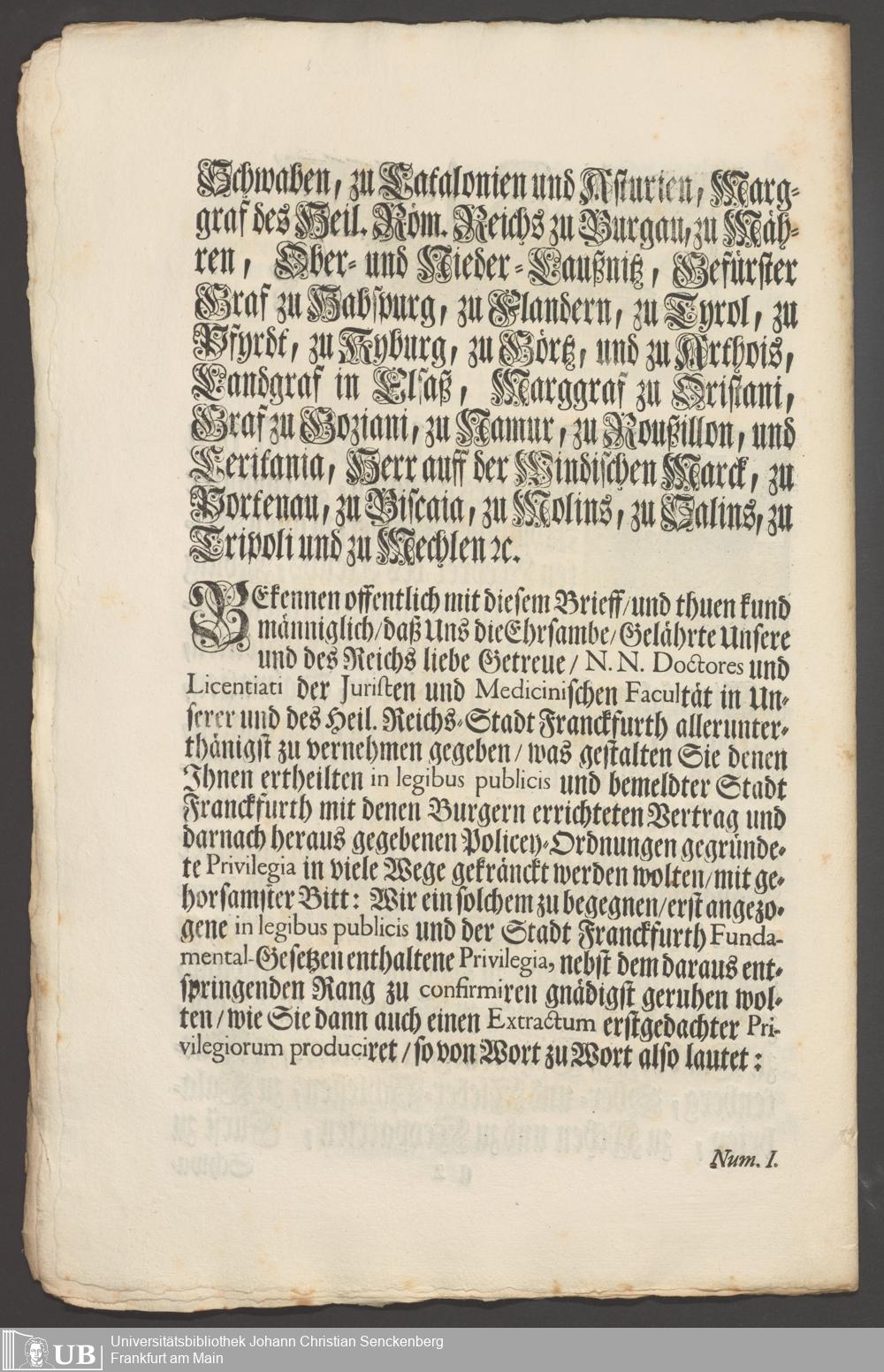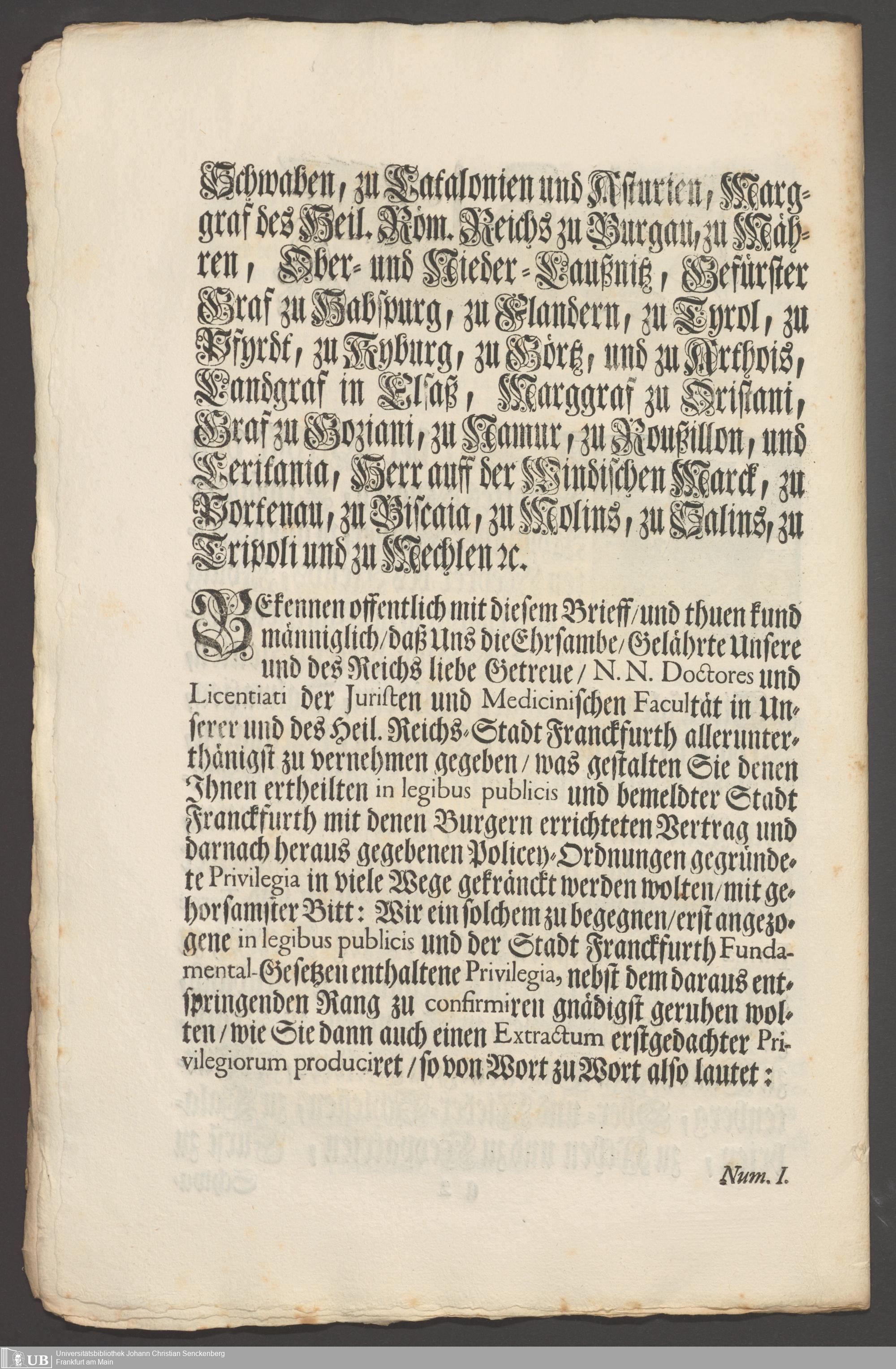 B 5 Dr. Senckenbergische Stiftung, 267 - Abdruck der Privilegien für Juristen und Mediziner in Frankfurt