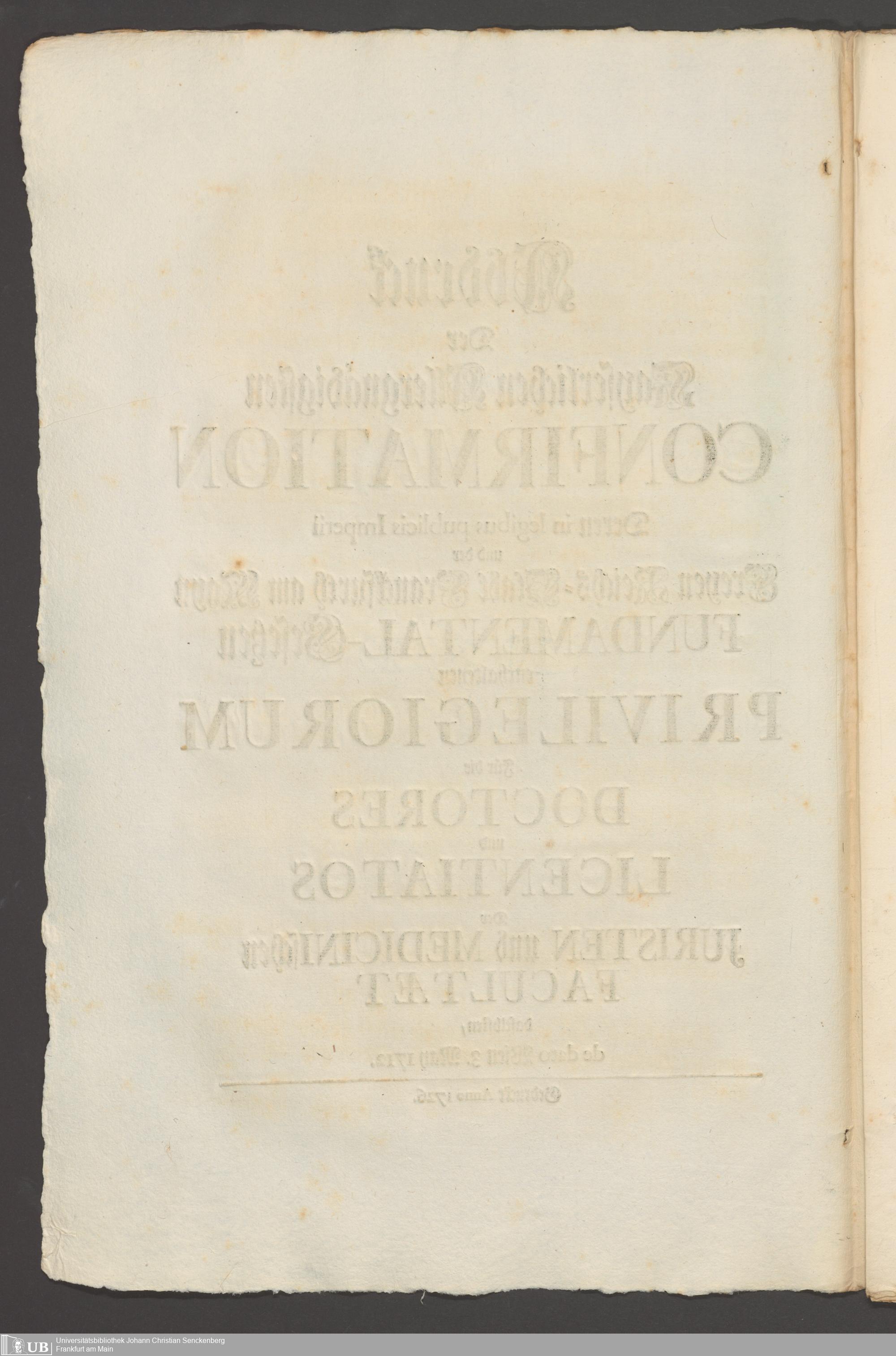 B 5 Dr. Senckenbergische Stiftung, 267 - Abdruck der Privilegien für Juristen und Mediziner in Frankfurt