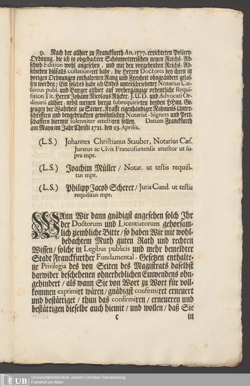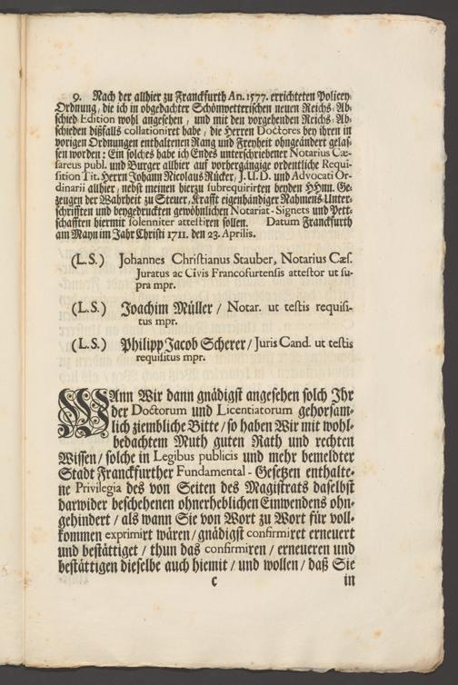 B 5 Dr. Senckenbergische Stiftung, 267 - Abdruck der Privilegien für Juristen und Mediziner in Frankfurt