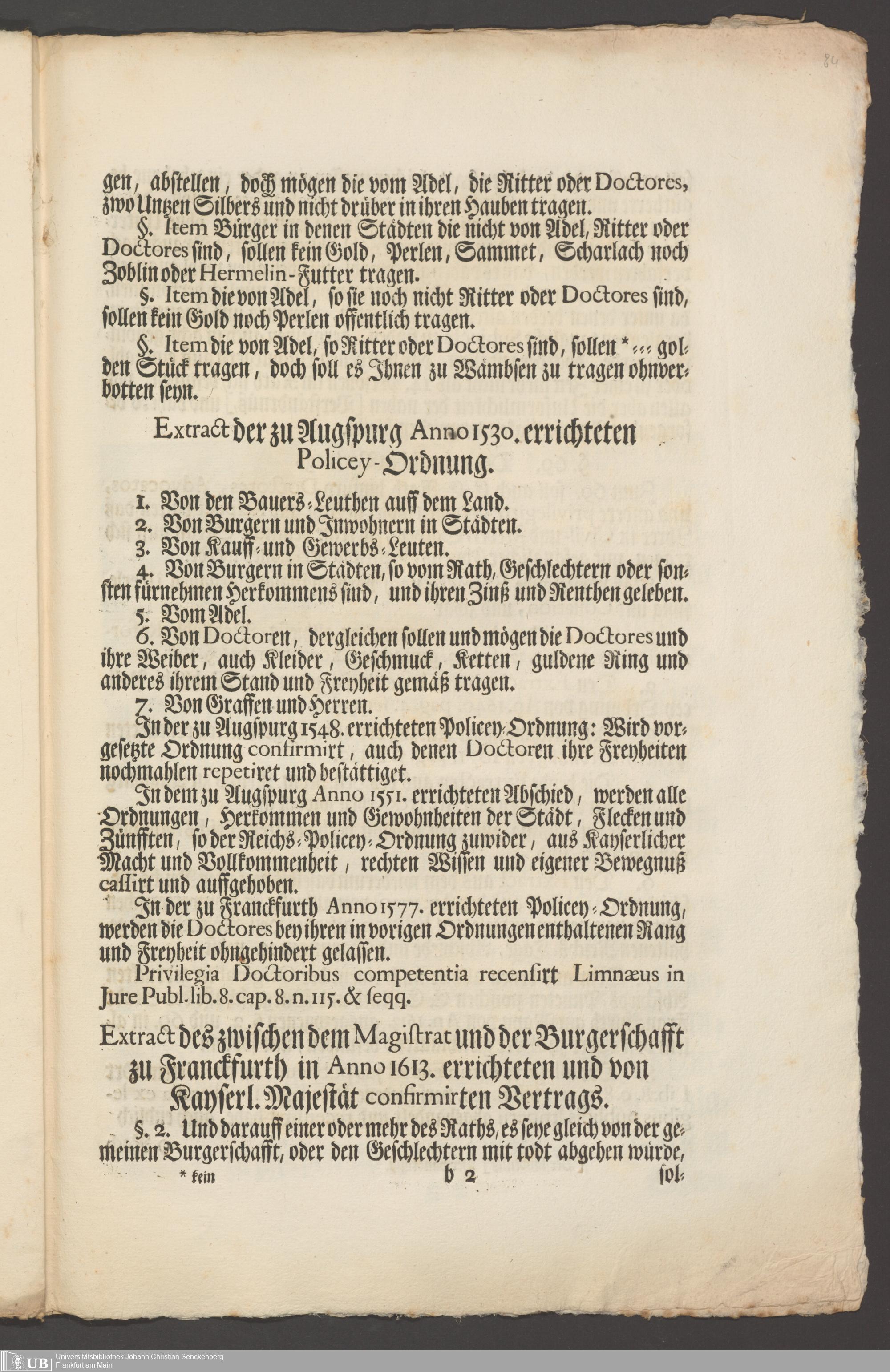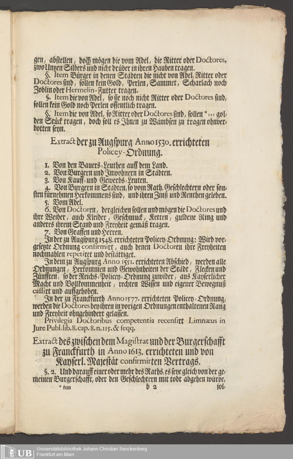 B 5 Dr. Senckenbergische Stiftung, 267 - Abdruck der Privilegien für Juristen und Mediziner in Frankfurt