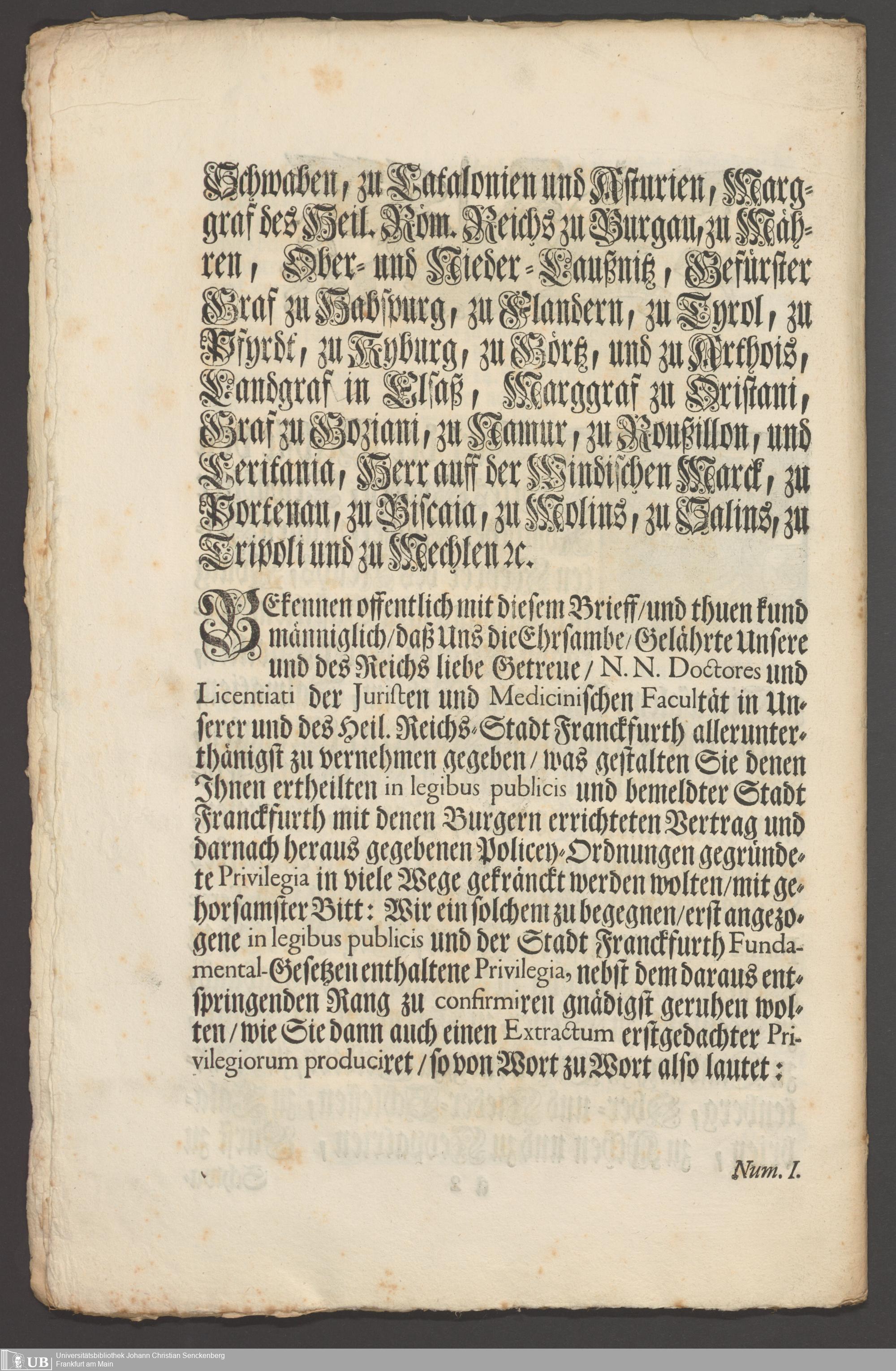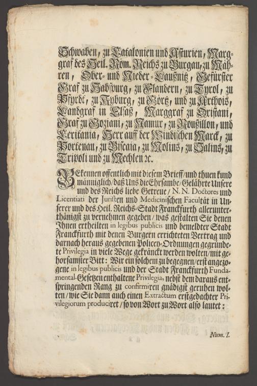 B 5 Dr. Senckenbergische Stiftung, 267 - Abdruck der Privilegien für Juristen und Mediziner in Frankfurt