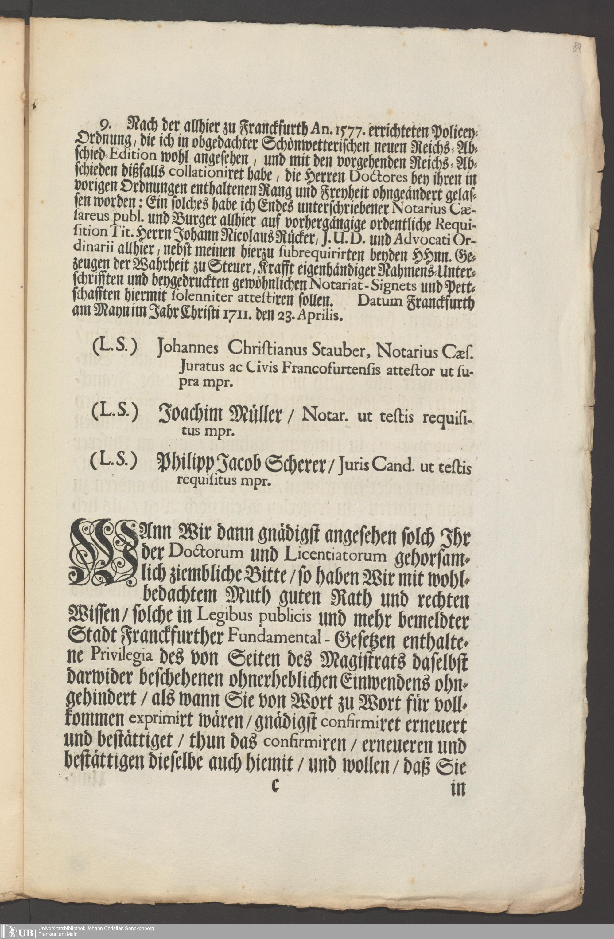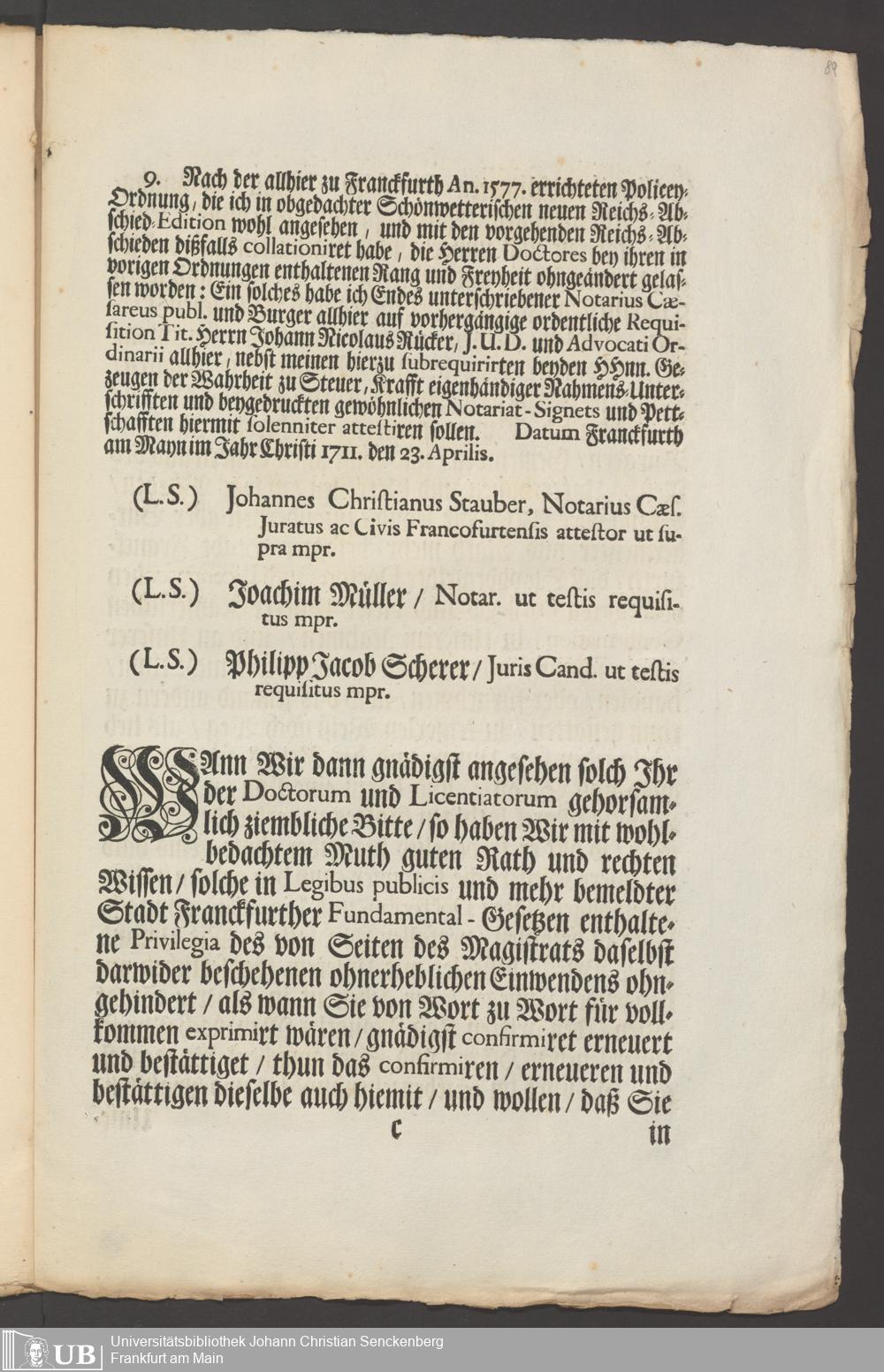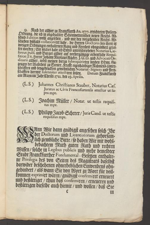 B 5 Dr. Senckenbergische Stiftung, 267 - Abdruck der Privilegien für Juristen und Mediziner in Frankfurt