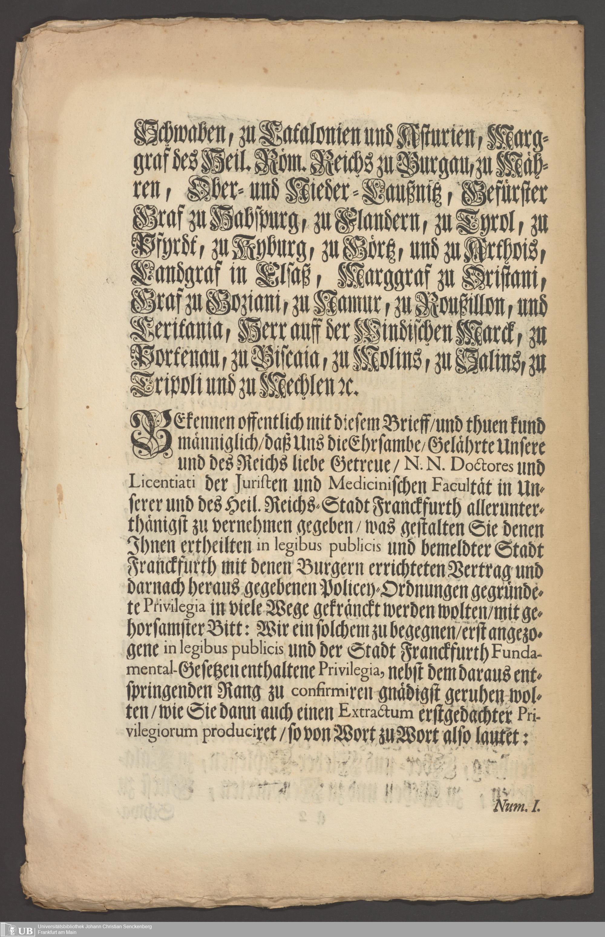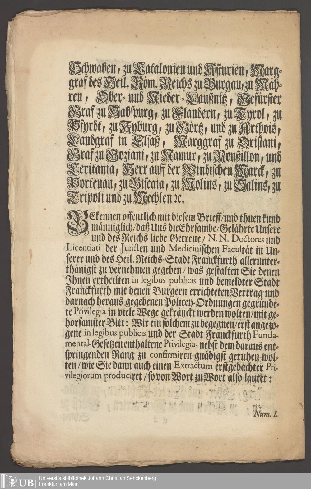 B 5 Dr. Senckenbergische Stiftung, 267 - Abdruck der Privilegien für Juristen und Mediziner in Frankfurt