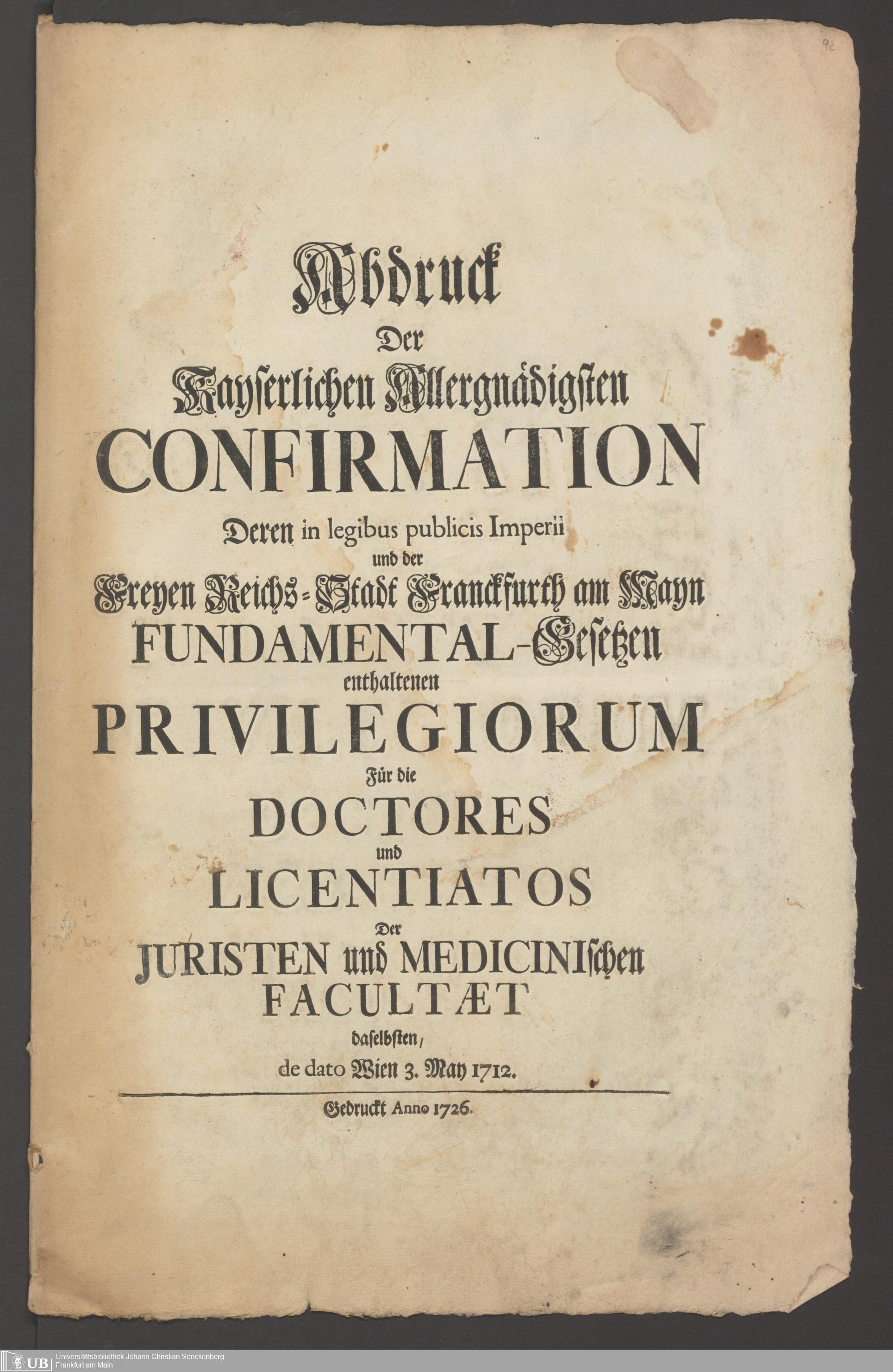B 5 Dr. Senckenbergische Stiftung, 267 - Abdruck der Privilegien für Juristen und Mediziner in Frankfurt
