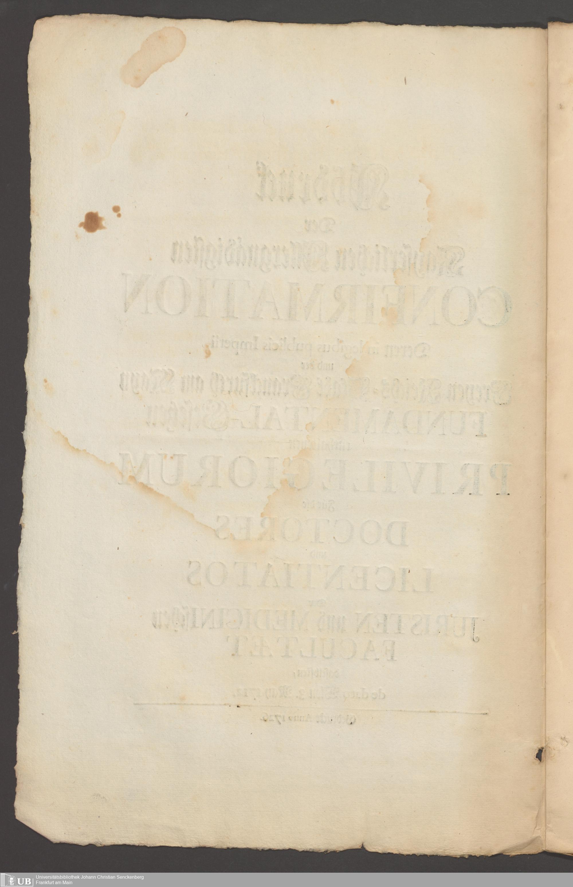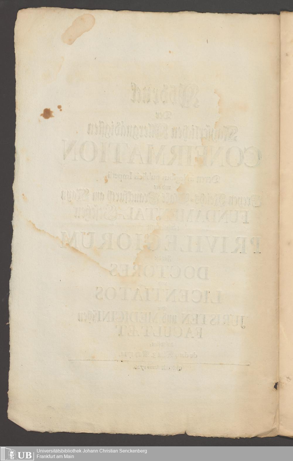 B 5 Dr. Senckenbergische Stiftung, 267 - Abdruck der Privilegien für Juristen und Mediziner in Frankfurt