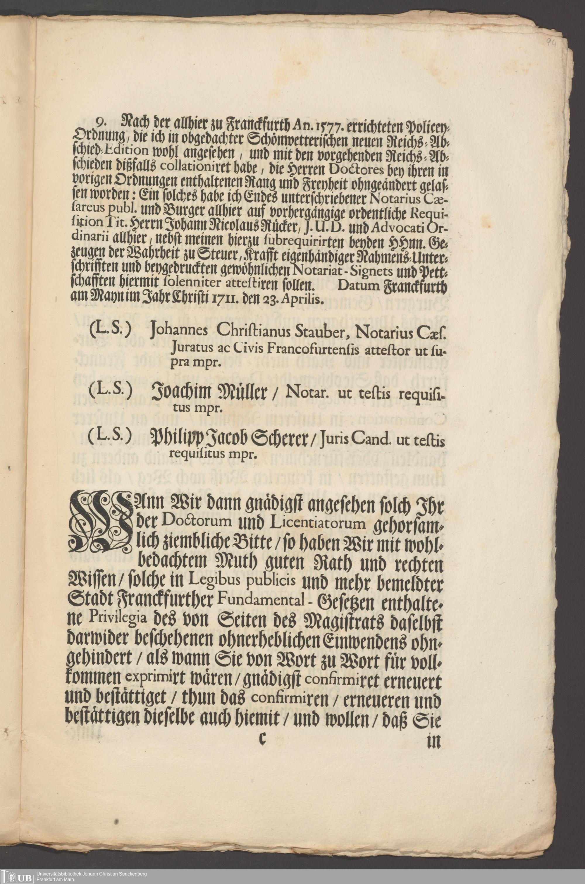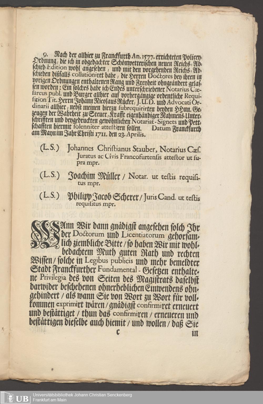 B 5 Dr. Senckenbergische Stiftung, 267 - Abdruck der Privilegien für Juristen und Mediziner in Frankfurt