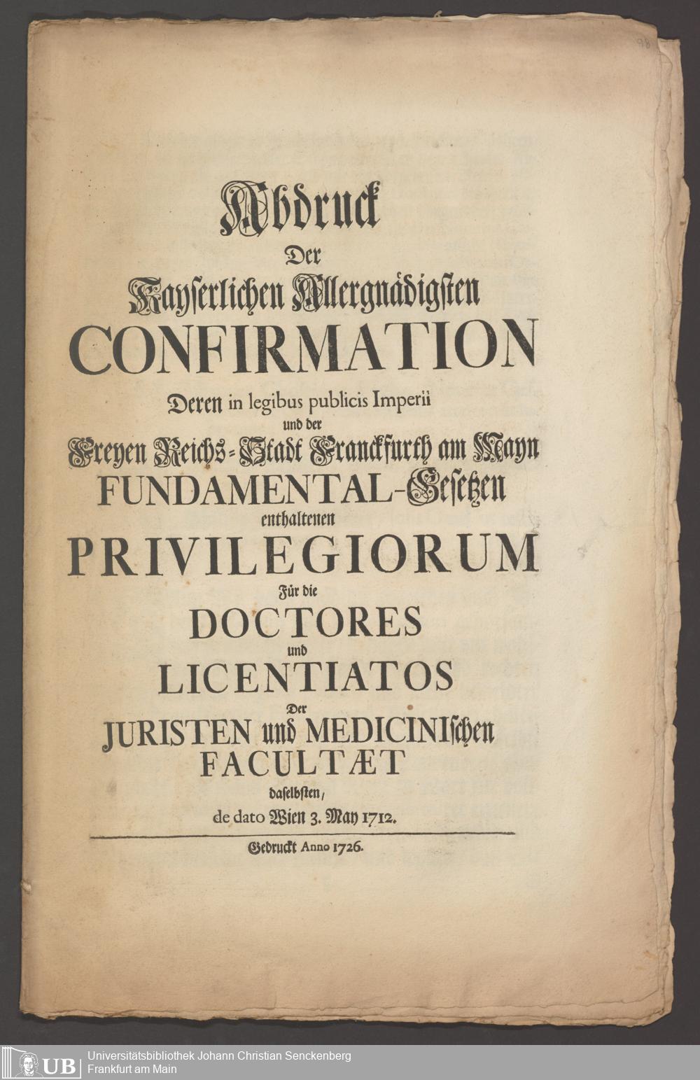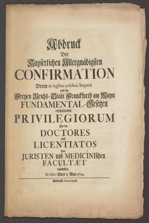 B 5 Dr. Senckenbergische Stiftung, 267 - Abdruck der Privilegien für Juristen und Mediziner in Frankfurt