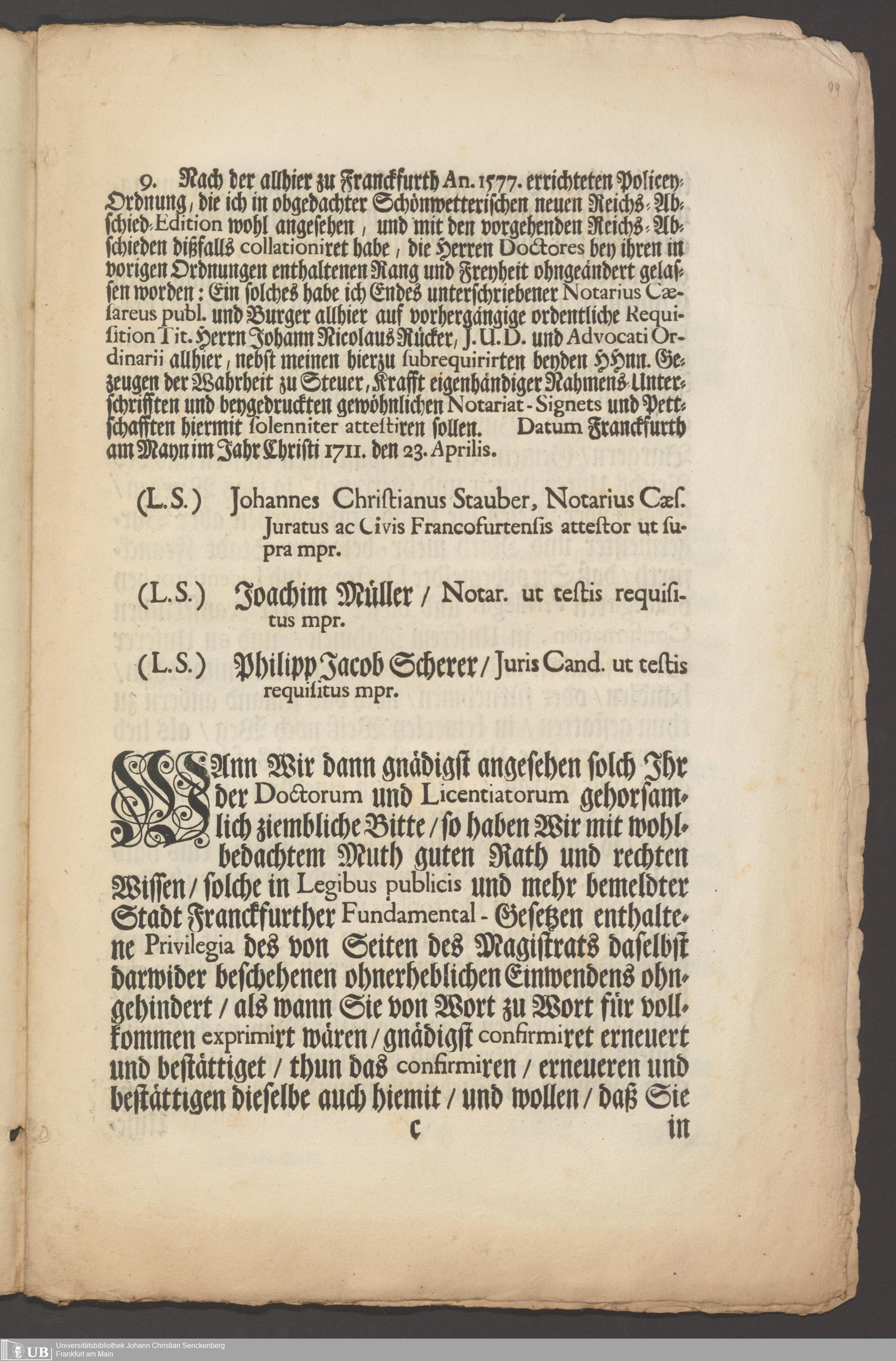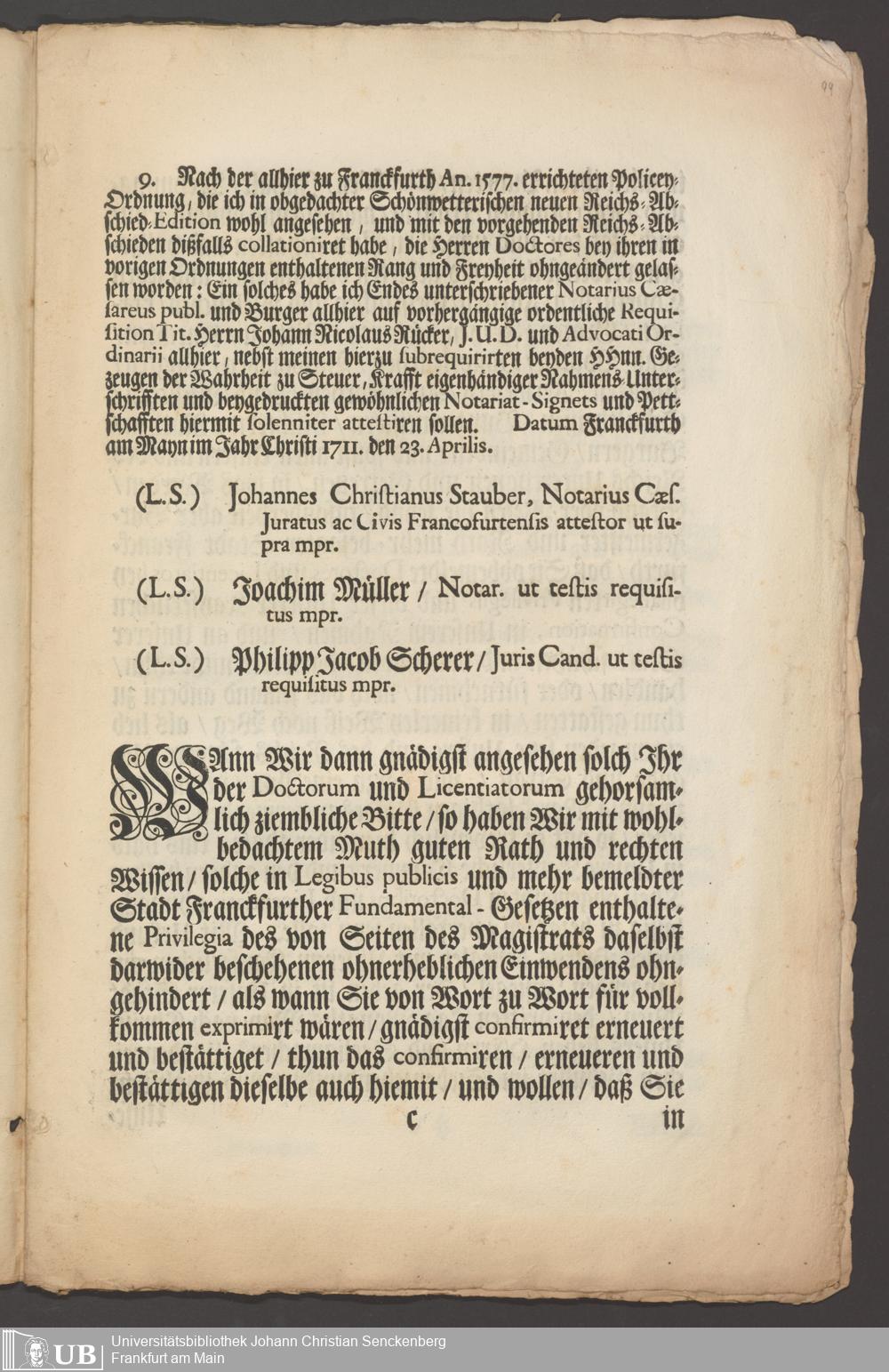 B 5 Dr. Senckenbergische Stiftung, 267 - Abdruck der Privilegien für Juristen und Mediziner in Frankfurt