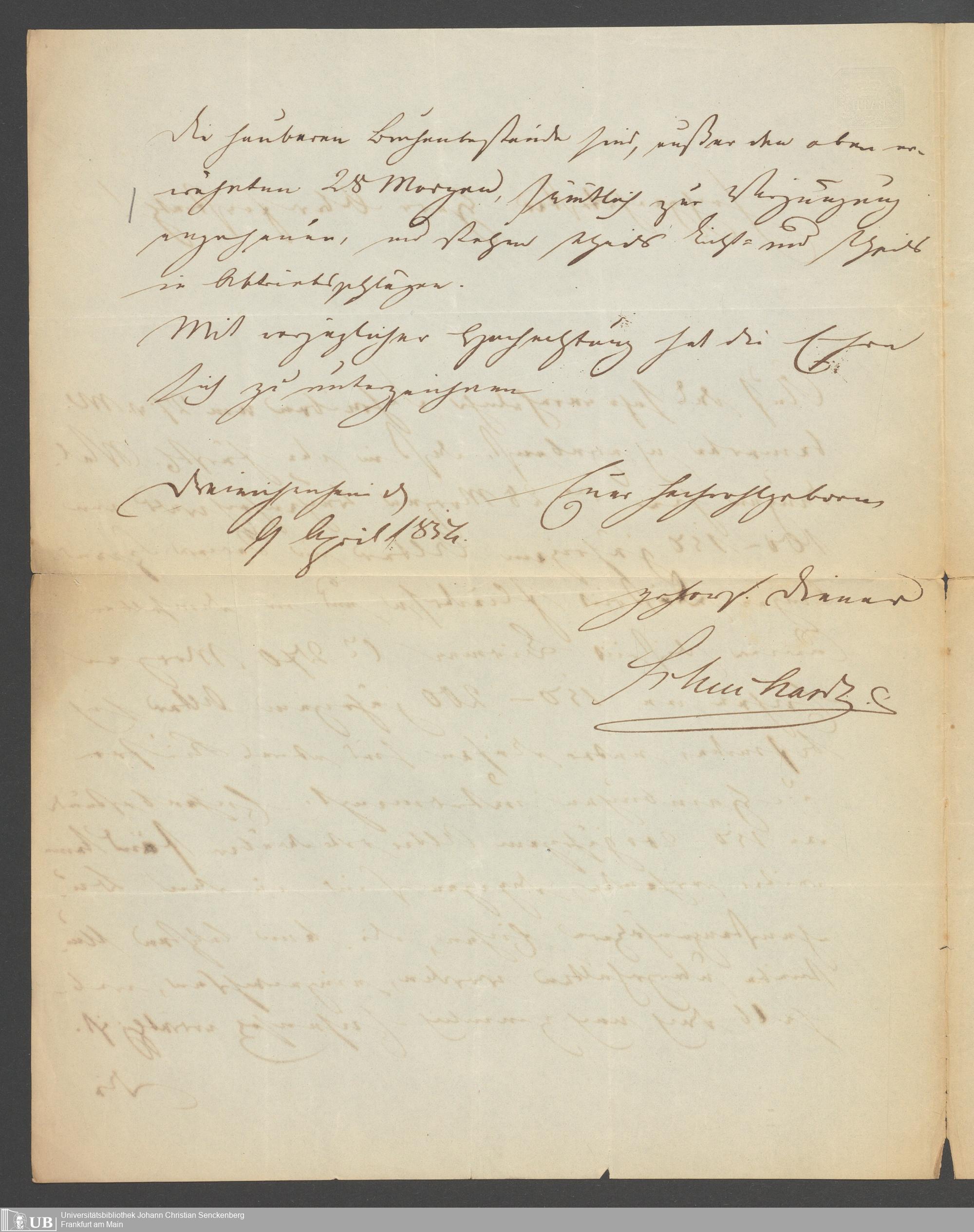 3. Zwei Briefe von C. Schuchartz an Oberforstrat Stockhausen, Darmstadt 1854 und von Bonsard an Stockhausen, Heusenstamm 1854
