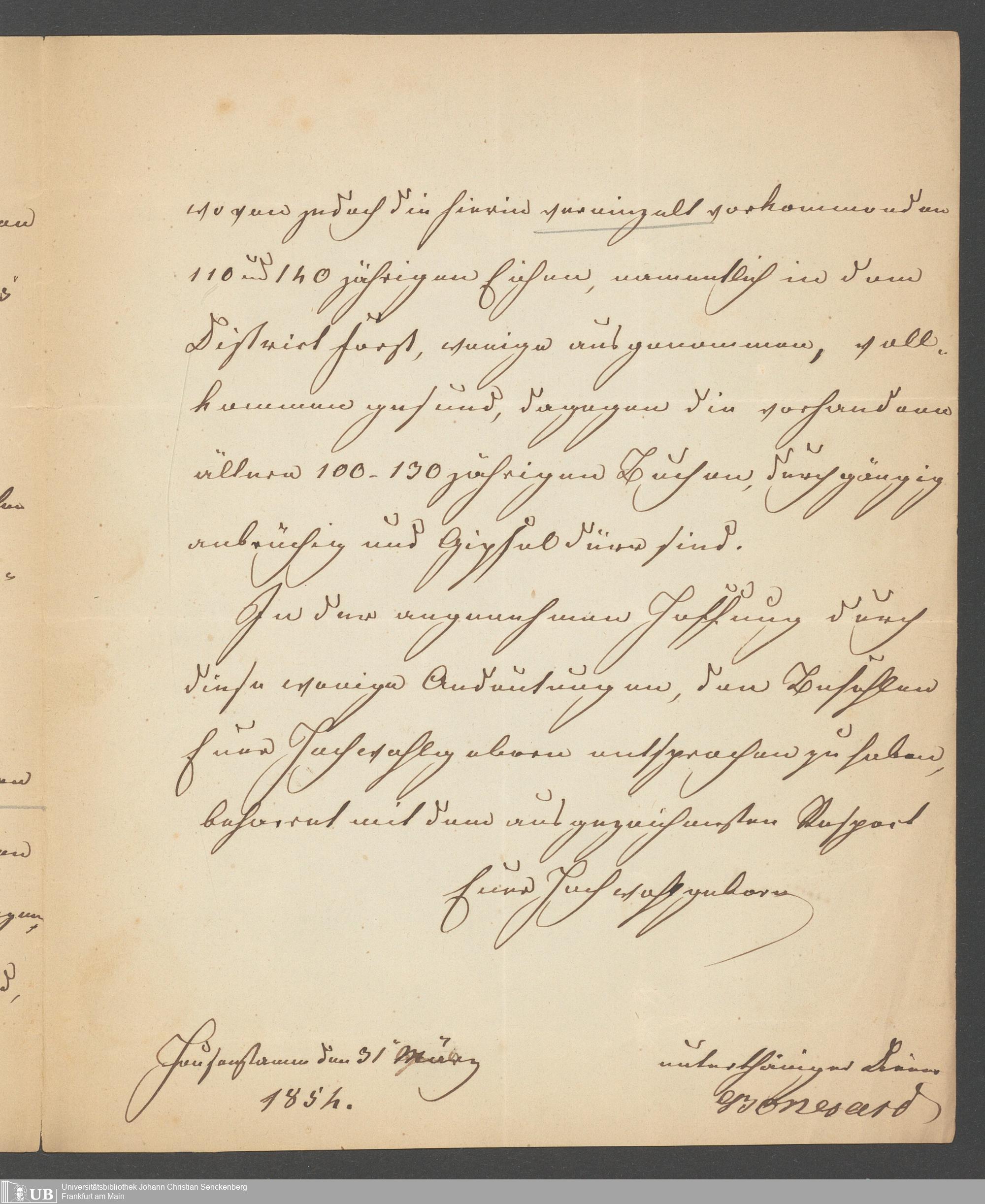 3. Zwei Briefe von C. Schuchartz an Oberforstrat Stockhausen, Darmstadt 1854 und von Bonsard an Stockhausen, Heusenstamm 1854