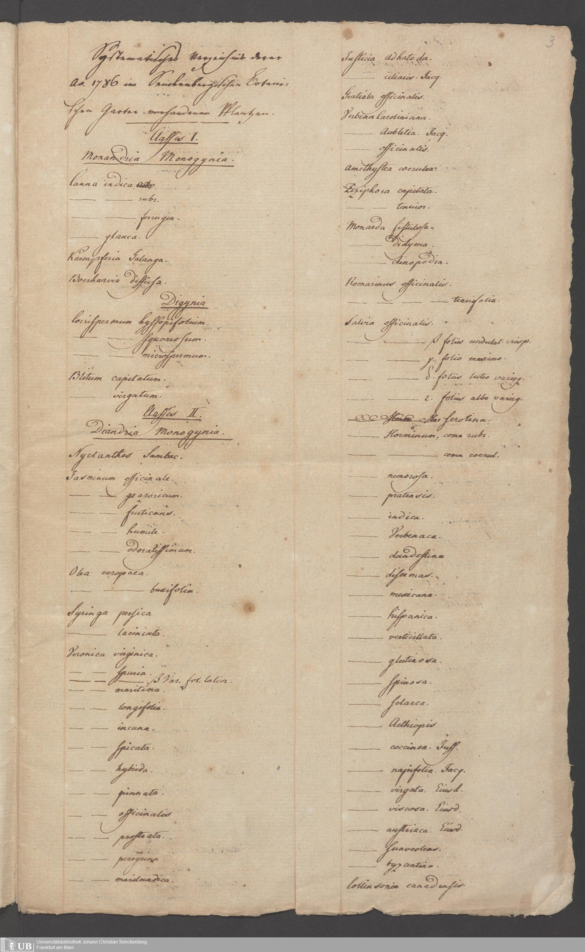 Na 82 Nachlass Georg Philipp Lehr, 9 - Verzeichnis der Pflanzen im Senckenbergischen Botanischen Garten