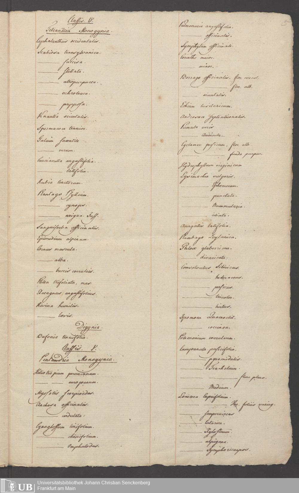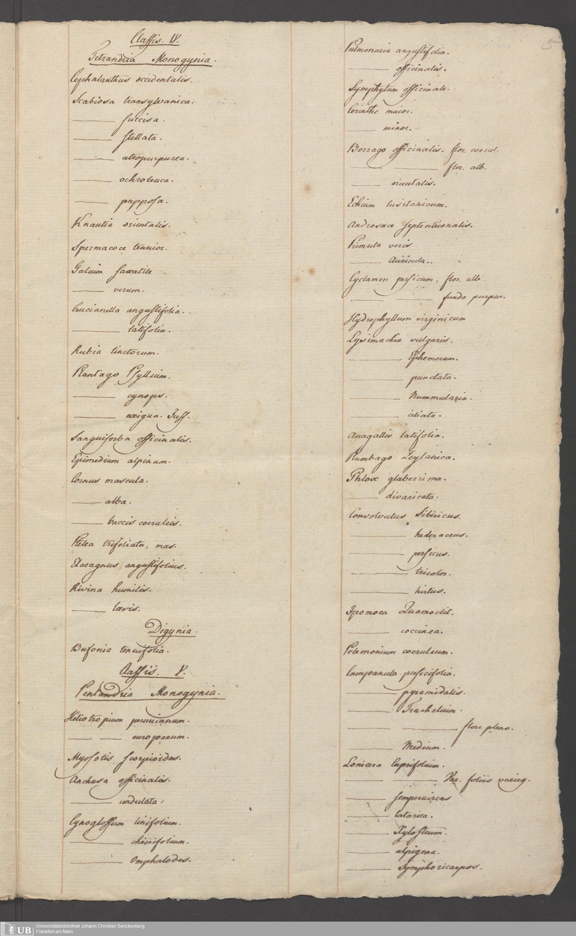 Na 82 Nachlass Georg Philipp Lehr, 9 - Verzeichnis der Pflanzen im Senckenbergischen Botanischen Garten