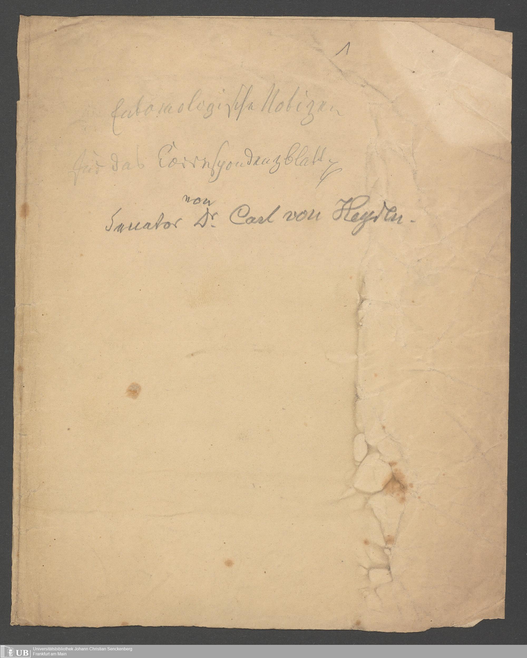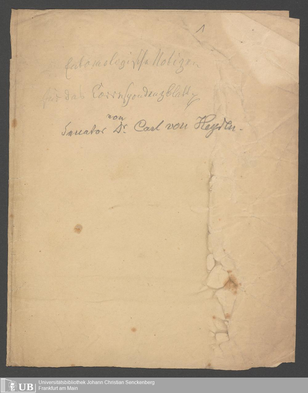 Entomologische Notizen für das Correspondenzblatt, von Senator Dr. Carl von Heyden