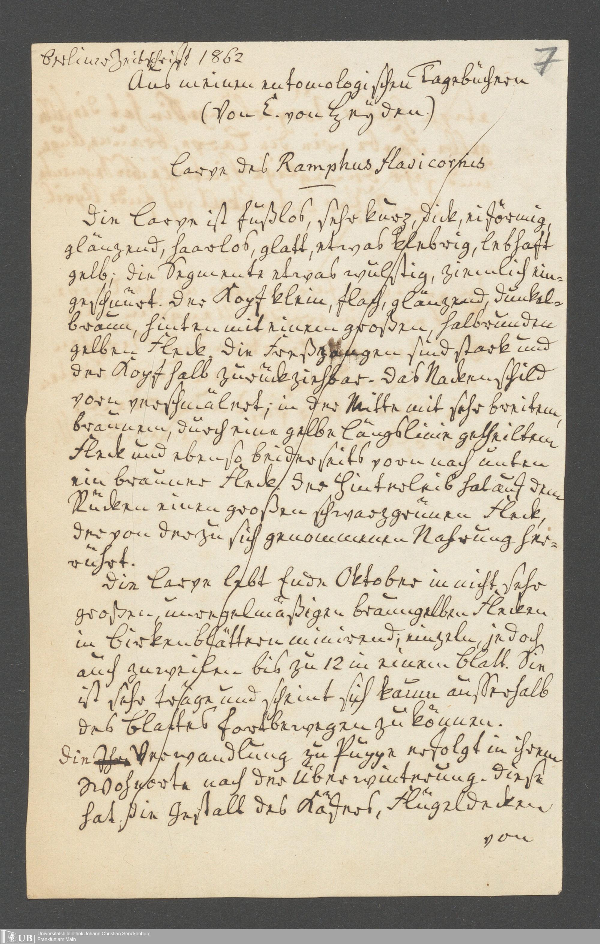 Entomologische Notizen für das Correspondenzblatt, von Senator Dr. Carl von Heyden