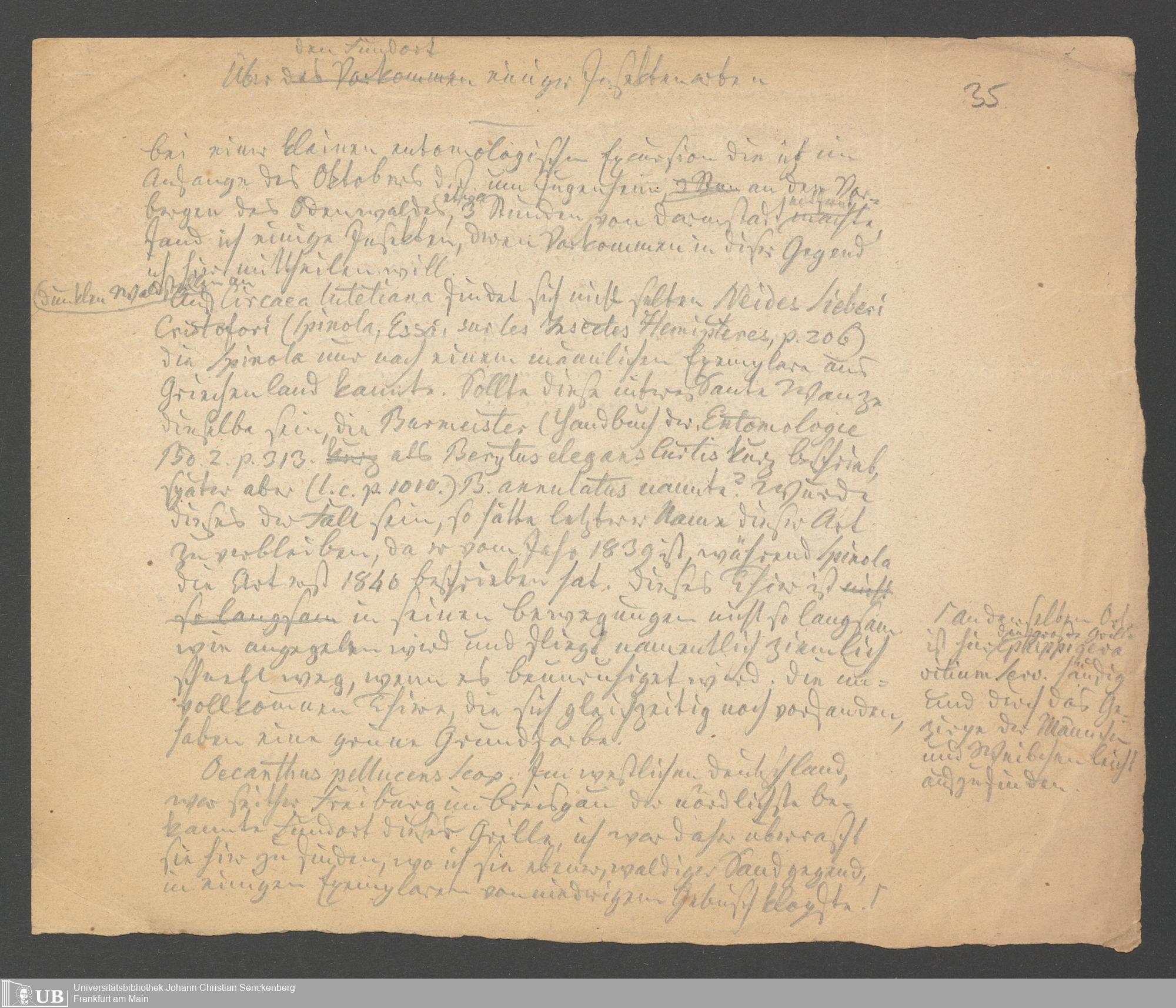 Entomologische Notizen für das Correspondenzblatt, von Senator Dr. Carl von Heyden