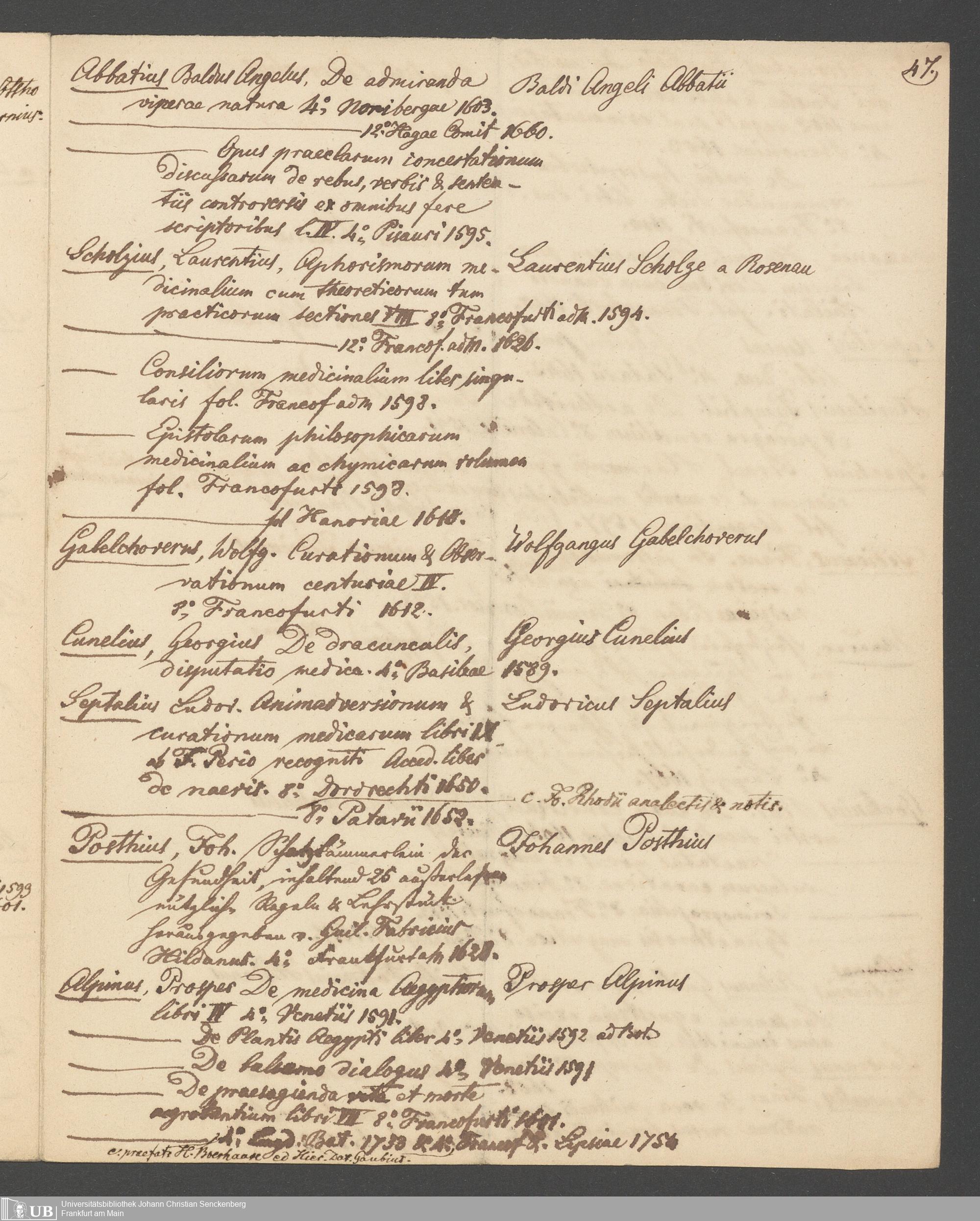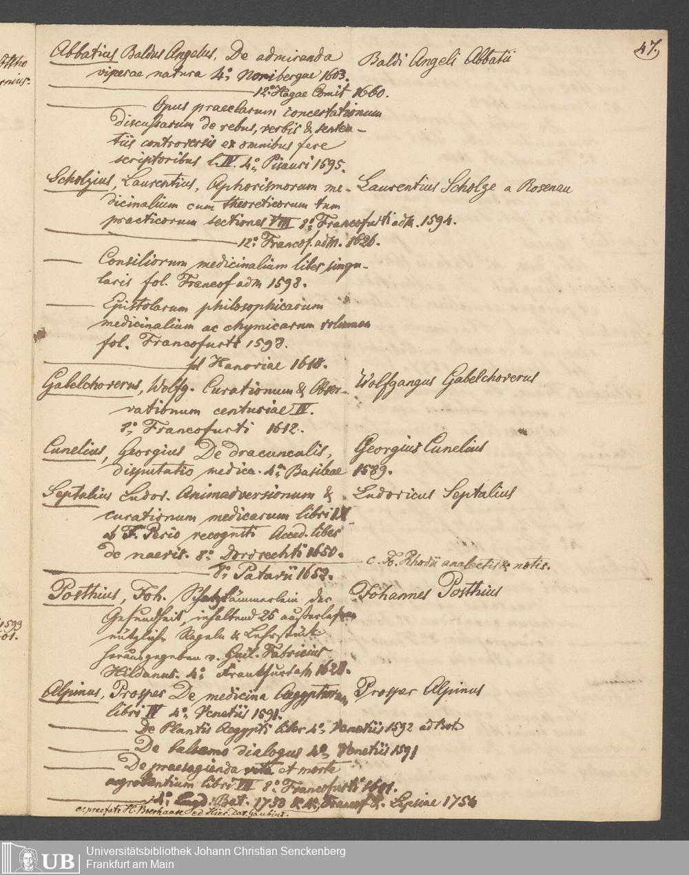 Nachlass Johann Christian Senckenberg