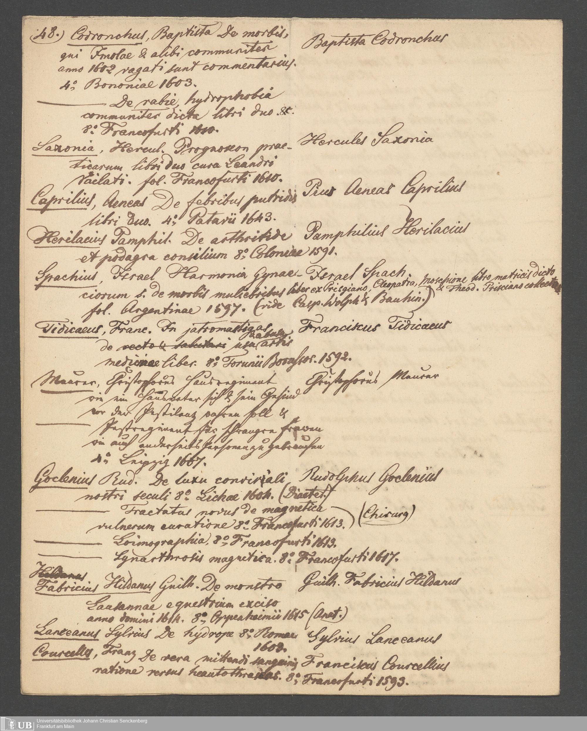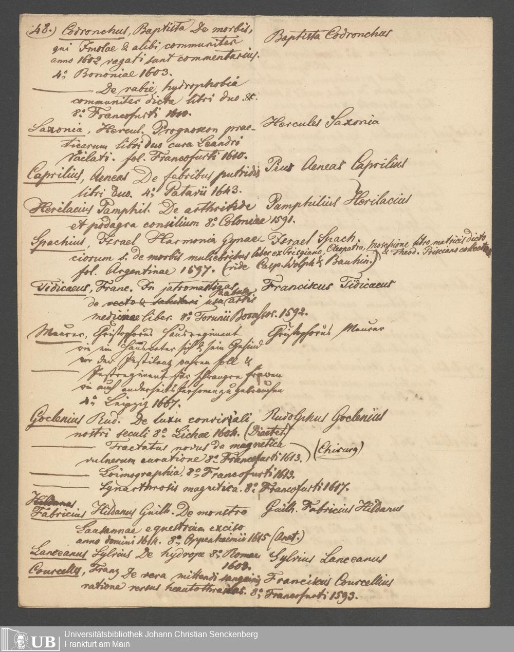 Na 40 Nachlass Carl von Heyden, 9 - Verzeichnis von Büchern; Einladungs- und Tischkarten (p.)