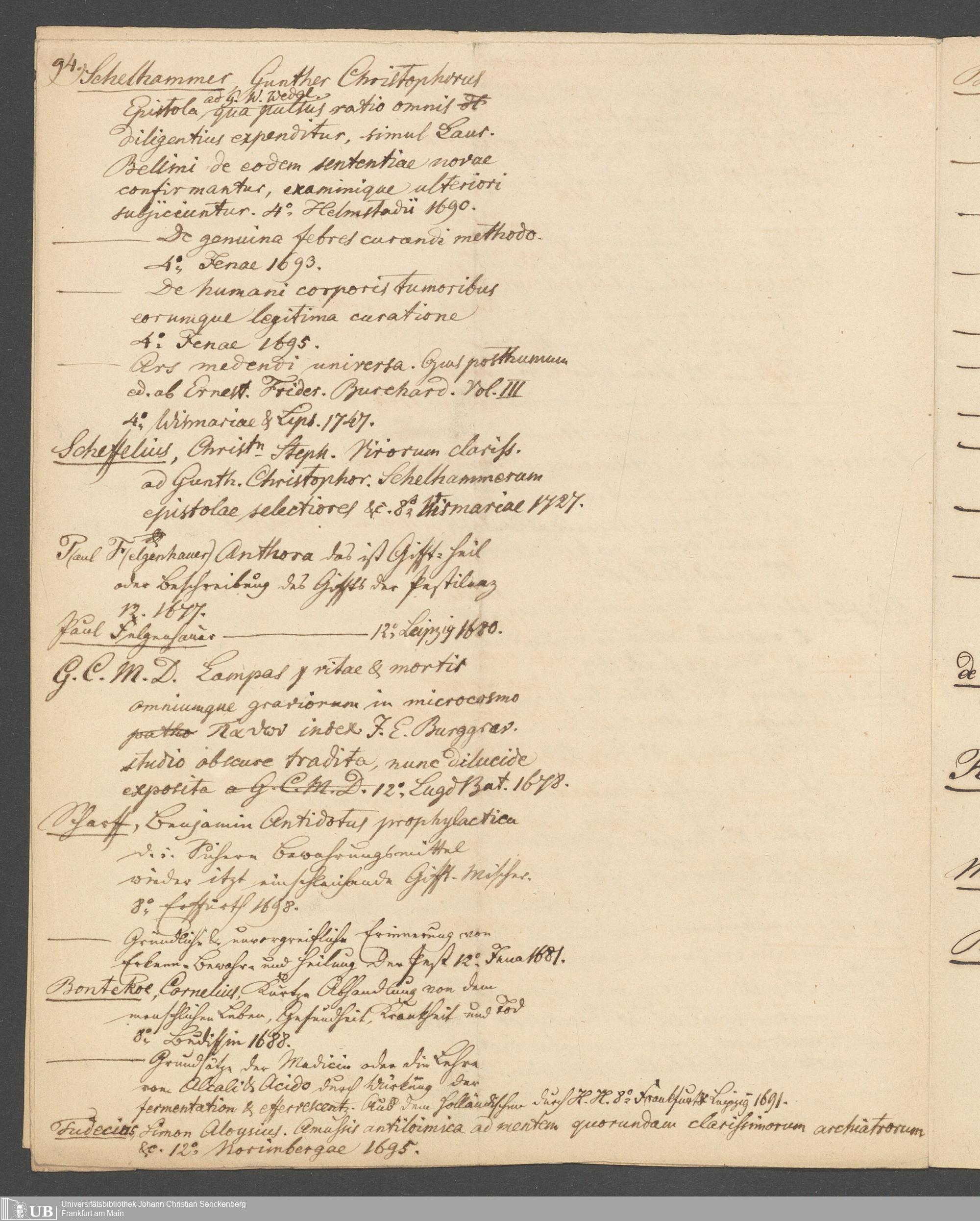 Na 40 Nachlass Carl von Heyden, 9 - Verzeichnis von Büchern; Einladungs- und Tischkarten (p.)