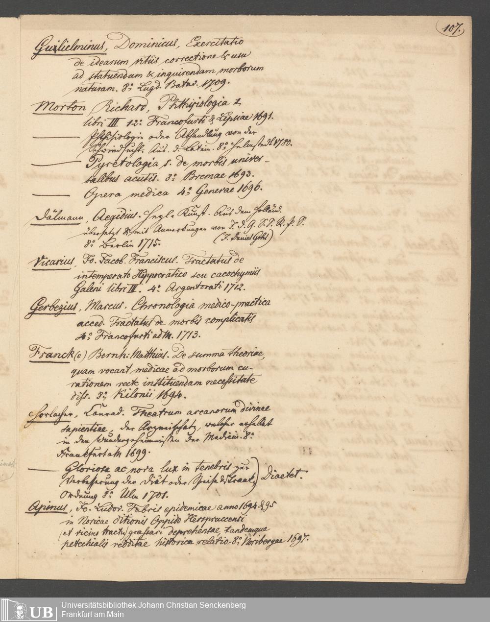 Na 40 Nachlass Carl von Heyden, 9 - Verzeichnis von Büchern; Einladungs- und Tischkarten (p.)