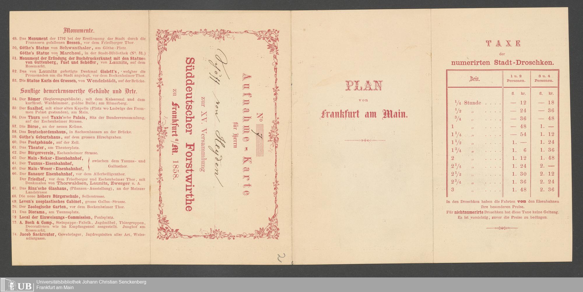 Na 40 Nachlass Carl von Heyden, 9 - Verzeichnis von Büchern; Einladungs- und Tischkarten