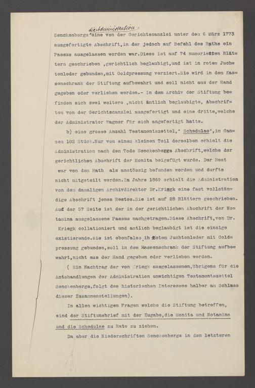 Na 78 Nachlass Ernst Roediger, 1 - Sammlung zur Senckenbergischen Stiftung