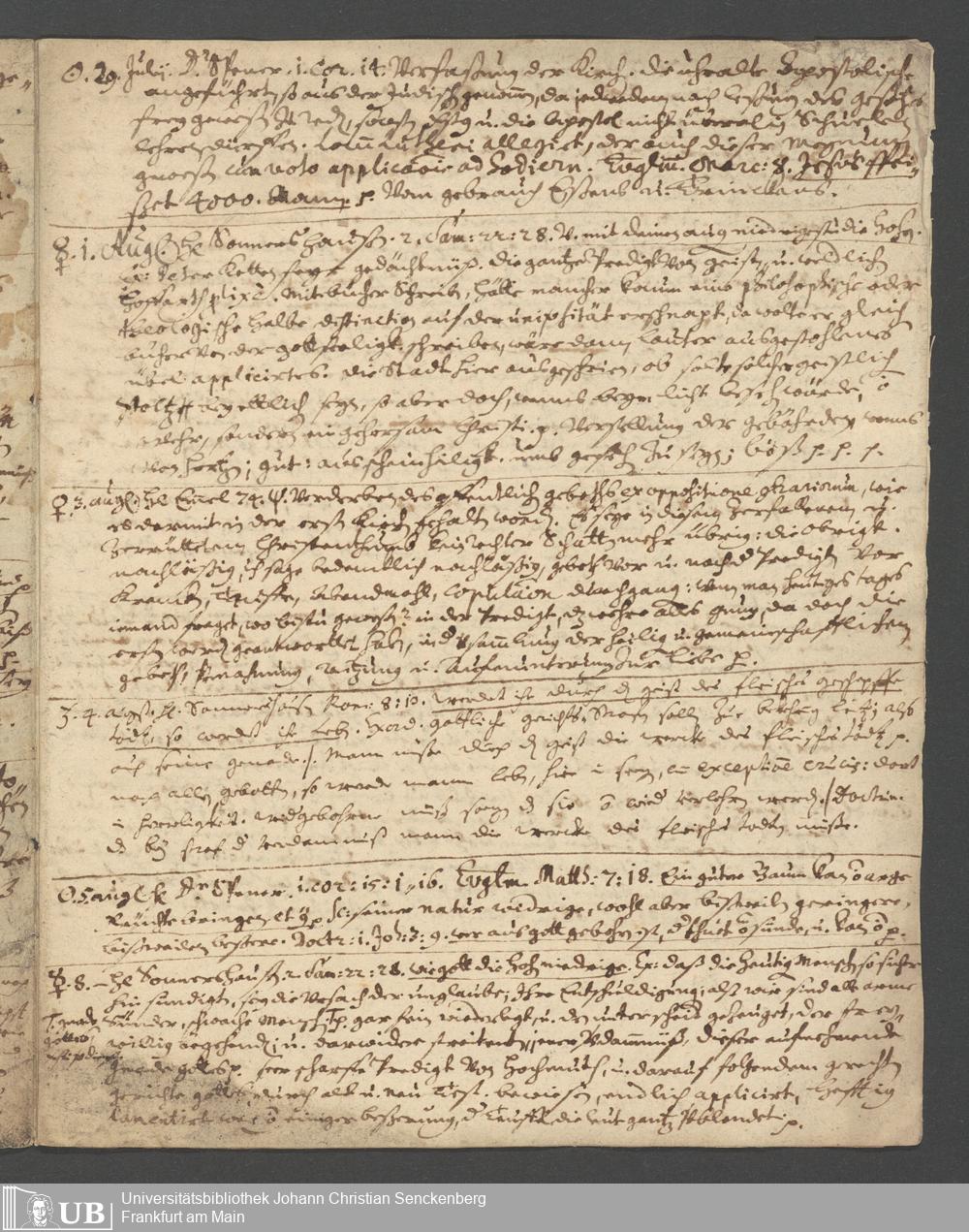 Inhaltsangabe der Predigten von Spener, Sondershausen, Emmel. Juli - August 1677