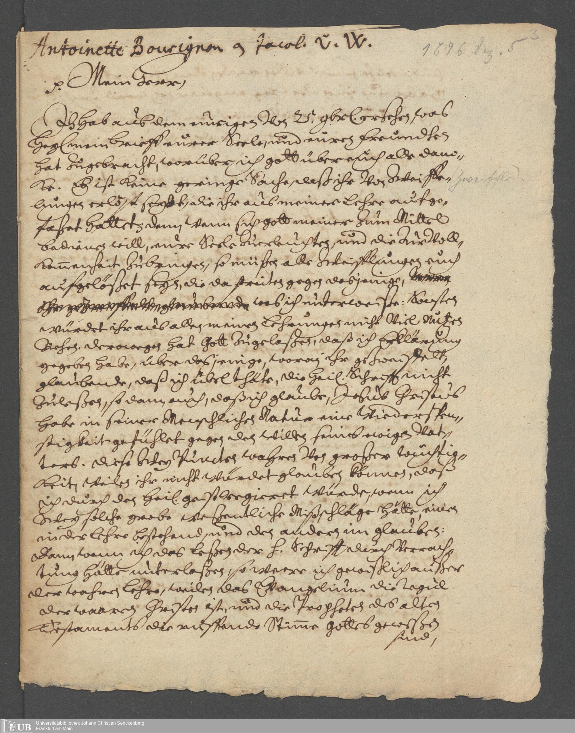Brief an Antoinette Bourignon, 5. Dez. 1676