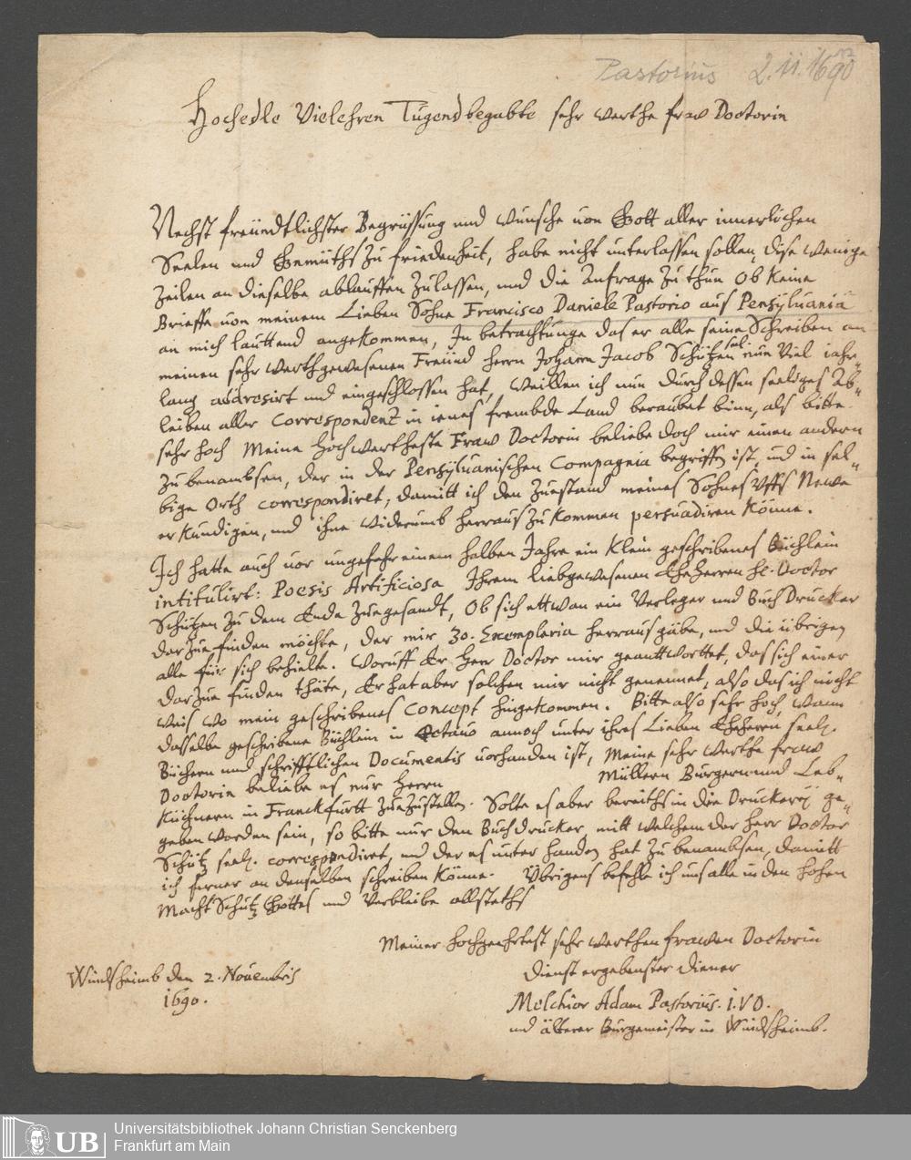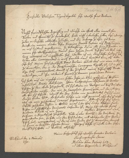 Brief an Doctor Schütz, 31. Dezember 1689